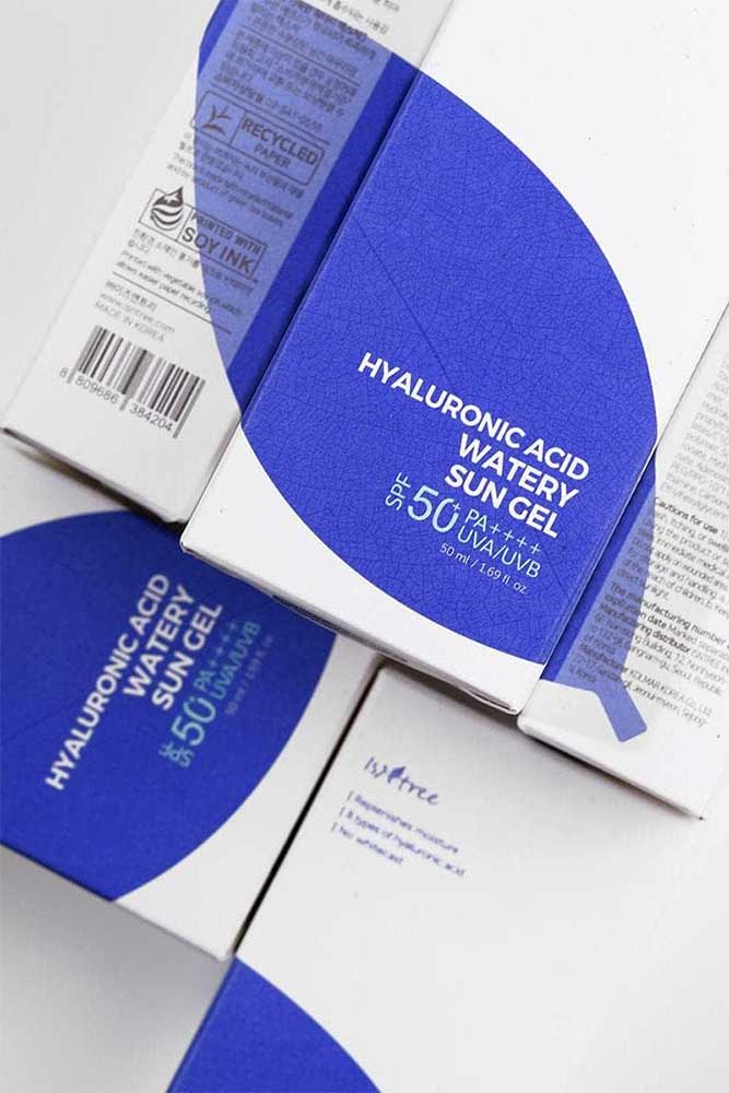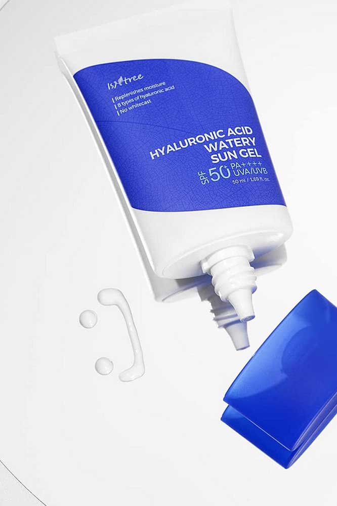 ژل ضدآفتاب هیالورونیک اسید ایزنتری Isntree Hyaluronic Watery Sun Gel محافظت کننده قوی با فیلتر SPF50 در برابر پرتوهای UVB و UVA به همراه مواد موثر آبرسان و بافت سبک ژلی بدون چرب کنندگی و بدون باقیمانده سفید است. ژل ضدآفتاب ایزنتری حاوی 8 نوع هیالورونیک اسید با وزن های ملکولی متفاوت برای آبرسانی لایه های مختلف پوست است که با دیگر ترکیبات کلیدی از جمله عصاره گیاه سیکا برای ترمیم پوست، عصاره انجیر برای تغذیه پوست، آدنوزین برای افزایش ارتباط میان سلولی و سفتی پوست و نیاسین آمید برای تسکین و روشن کنندگی پوست همراه شده است. این فرمول همچنین حاوی ویتامین ای با خواص آنتی اکسیدانی و ضدپیری است.