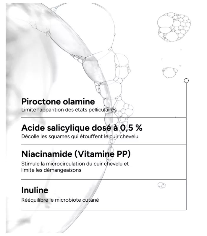Aqua (Water), Sodium Laureth Sulfate, Salicylic Acid, Dipropylene Glycol, Acrylates/C10-30 Alkyl Acrylate Crosspolymer, Coco-Betaine, Piroctone Olamine, Sodium Lactate, Inulin, Glyceryl Undecylenate, Juniperus Oxycedrus Wood Oil, Niacinamide, Panthenol, Decyl Glucoside, Glycyrrhetinic Acid, PCA Glyceryl Oleate, Sorbitan Caprylate, Sodium Levulinate, Sodium Hydroxide, Sodium Benzoate, Citric Acid