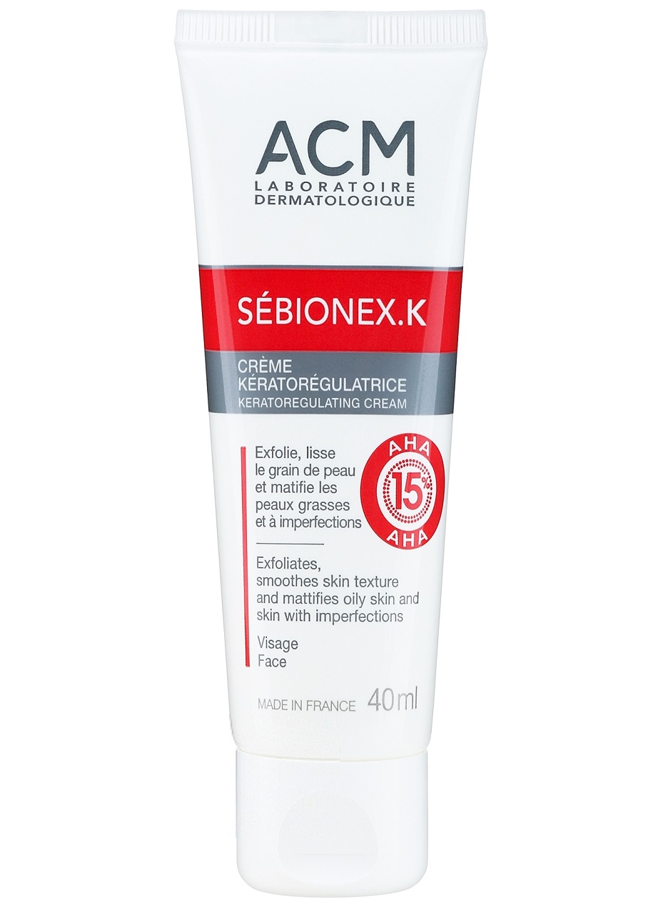 کرم لایه بردار پوست چرب ای سی ام سبیونکس ACM Sebionex K دارای عملکرد تصفیه کننده، متعادل کننده، هموار کننده و مات کننده پوست های چرب و جوش زا با بافت ناهموار است.کرم لایه بردار سبیونکس حاوی 15 درصد آلفا هیدروکسی اسید AHA با سه فرم متفاوت برای اطمینان از تطابق کامل با آستانه تحمل پوست است، این فرمول حاوی زینک گلوکونات برای تنظیم ترشح چربی سبوم، تصفیه منافذ و جلوگیری از تکثیر میکرو ارگانیسم های جوش زا و ناهموار کننده پوست است. کرم سبیونکس کا به لطف عامل مات کننده اش، سبوم اضافی را جذب می کند و در نتیجه ظاهر براق پوست چرب را در طول روز کاهش می دهد و پوست را شفاف و غیر براق می کند.