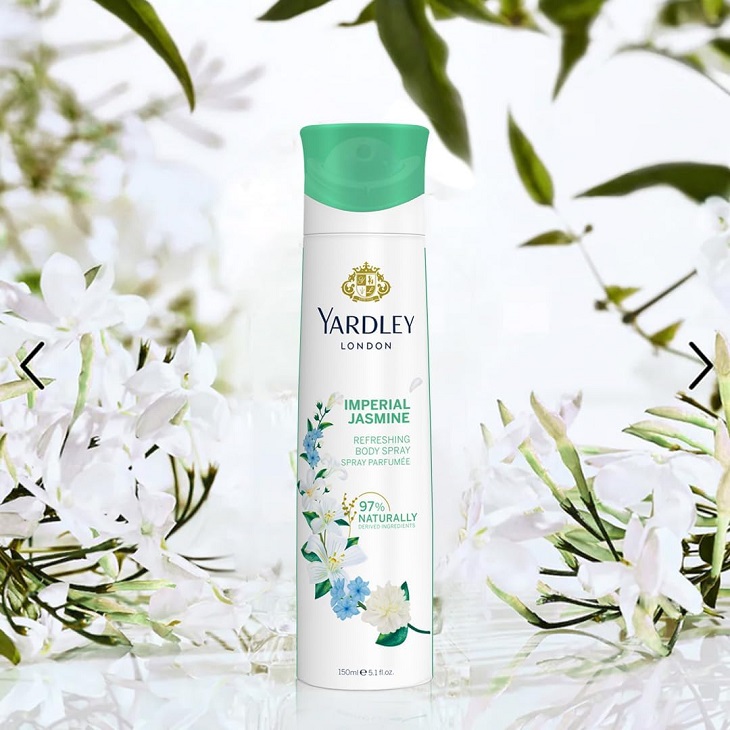 اسپری خوشبوکننده بدن گل یاس یاردلی Yardley Imperial Jasmine حاوی 97 درصد ترکیبات بدست آمده با منشاء طبیعی و دارای رایحه دلپذیر بدست آمده از گل یاس سلطنتی دست چین شده از باغ های انگلیسی با امضای یاردلی است و حس تازگی و آسودگی را در تمام طول روز به ارمغان می آورد. اسپری خوشبوکننده یاردلی دارای رایحه گل یاس به همراه نت های گرم مشک و کهربا است و حس لطیف و تازه پیوسته را فراهم می کند.