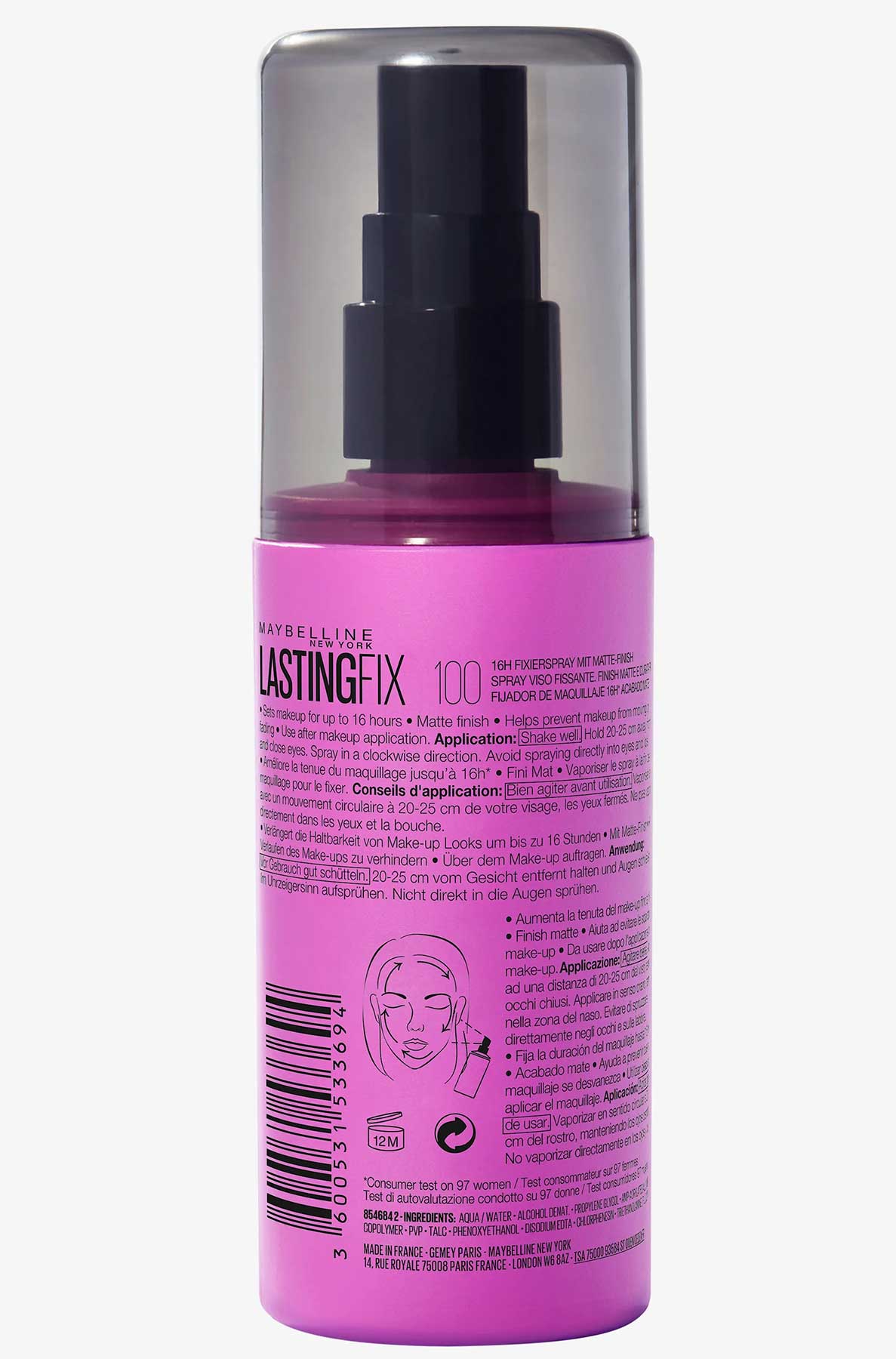 اسپری تثبیت کننده آرایش میبلین Maybelline Lasting Fix محصولی باکیفیت برای افزایش ماندگاری ظاهر آرایش و ایجاد روکش مات با حفظ شادابی و سبکی پوست می باشد. اسپری فیکس کننده میبلین حاوی ذرات ریز پودری است که به طور یکنواخت روی پوست قرار می گیرند و بلافاصله چربی اضافی را جذب می کند. این کار از ایجاد لک های براق جلوگیری می کند و آرایش را تا 16 ساعت حفظ می کند.