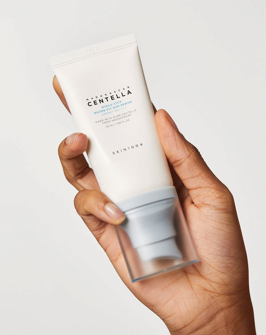 سرم ضدآفتاب و آبرسان اسکین1004 Skin Centella Water Fit SPF50 دارای فرمول فوق العاده سبک و حاوی کمپلکس 7 نوع عصاره جوانه با خواص آنتی اکسیدانی و محافظت کنندگی به همراه فیلترهای ضدآفتاب SPF50 برای مراقبت روزانه در برابر پرتوهای UVA و UVB می باشد. سرم ضدآفتاب اسکین1004 حاوی عصاره گیاه سنتلا آسیاتیکا بدست آمده از ماداگاسکار با عملکرد ترمیم و بازسازی کنندگی پوست و هیالورونیک اسید برای آبرسانی قوی می باشد. این ترکیب همچنین حاوی عصاره چای سبز برای تسکین و تصفیه پوست، عصاره جوانه گندم غنی از ویتامین ها و مواد معدنی مغذی پوست، عصاره گل کاملیا برای محافظت آنتی اکسیدانی و عصاره جوانه کلم بروکلی برای حفظ رطوبت و جلوگیری از آسیب پوست می باشد.