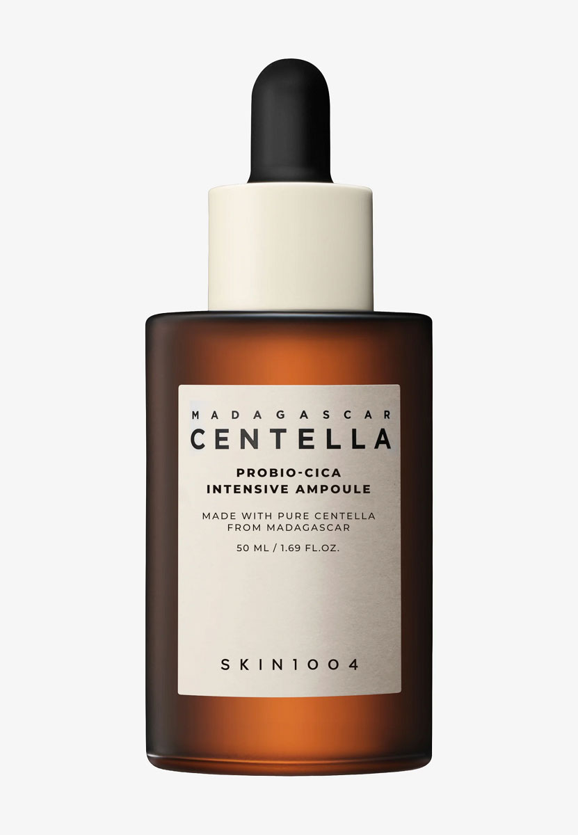 سرم آمپول تسکین دهنده و ترمیم کننده پوست اسکین1004 سنتلا Probio-Cica دارای فرمول ویژه با غلظت بالا برای ترمیم سد محافظت طبیعی پوست، تسکین بخشی، آبرسانی، سفت کنندگی، درخشندگی و کوچک کردن منافذ باز پوست می باشد. سرم ترمیم کننده اسکین 1004 حاوی عصاره تخمیر شده گیاه سنتلا آسیاتیکا بدست آمده از ماداگاسکار برای بازسازی پوست، افزایش استحکام و تقویت تولید کلاژن جدید می باشد. این ترکیب حاوی باکتری های مفید پروبیوتیک است که باعث محافظت از پوست در برابر از دست دادن رطوبت و بهبود نمای سفت تر، جوانتر و هموار پوست می شود. مواد موثر کلیدی دیگر این سرم شامل سرامید برای استحکام بخشی پوست، فیتواسترول و اسیدهای چرب برای حفظ رطوبت پوست و مادکاسیک اسید برای تسکین و آرامش بخشی پوست می باشد.