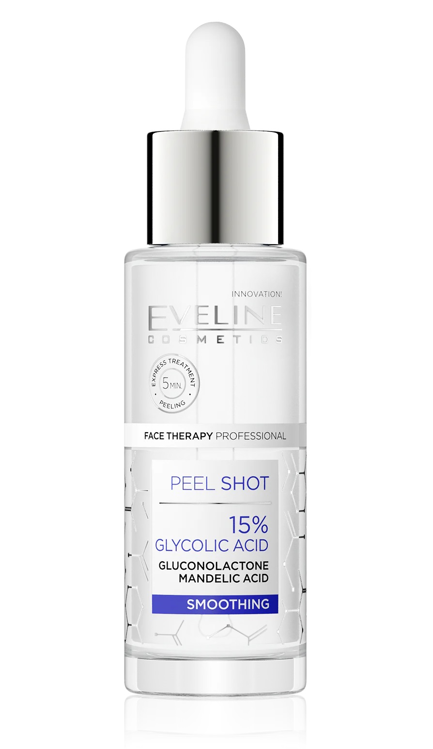 سرم لایه بردار و صاف کننده گلیکولیک اسید اولاین Eveline Glycolic 15 دارای فرمول نوسازی کننده پوست با دو عملکرد کاهش خطوط چروک و افزایش روشنایی پوست کدر و دارای لک می باشد و نمایی شبیه پوست لطیف کودک را به ارمغان می آورد. این سرم اولاین حاوی 15 درصد گلیکولیک اسید از خانواده اسیدهای AHA برای نوسازی موثر پوست است که با گلوکونولاکتون با خاصیت ضد لک و مندلیک اسید برای روشن کنندگی پوست همراه شده است.