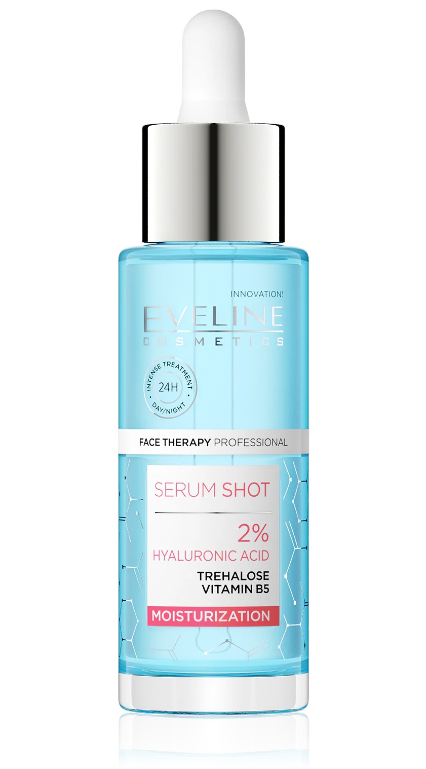سرم هیالورونیک اسید اولاین Eveline Hyaluronic 2 دارای فرمول آبرسانی قوی و فوری برای رفع علائم خشکی و تشنگی پوست های دهیدراته و مناسب برای حساس ترین پوست ها می باشد. سرم آبرسان اولاین حاوی 2 درصد هیالورونیک اسید هماهنگ شده با ماده موثر ترهالوز به عنوان بالم نرم کننده و تسکین دهنده برای کاهش خشکی پوست است. این ترکیب همچنین حاوی پنتنول (ویتامین B5) برای ترمیم و بازسازی اپیدرم، جلبک آبی و پلی ساکارید برای حفظ رطوبت در بافت پوست و جلوگیری از کاهش سطح رطوبت می باشد.