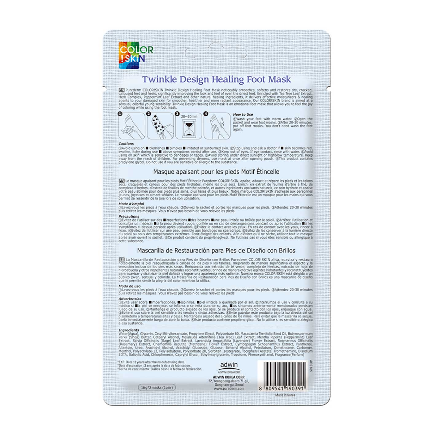 ماسک مراقبت پای پیوردرم Purederm Twinkle Healing پاها و پاشنه پای خشک، ترکخورده و پینهدار را بهطور قابل ملاحظه ای صاف، نرم و ترمیم میکند و احساس سلامتی پاها را بهطور قابل توجهی بهبود میبخشد. ماسک پای پیوردرم غنی شده با عصاره برگ درخت چای، عصاره نعناع و مرطوبکنندههای طبیعی برای ایجاد ظاهر صافتر، سالمتر و مراقبت شده پاها است. این ماسک همچنین دارای طراحی جذاب و شادی بخش است.