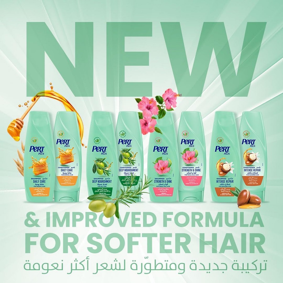 شامپو مغذی روغن زیتون و رزماری پرت پلاس Pert Deep Nourishment دارای فرمول مغذی و مناسب برای موهای خشک، آسیب دیده و رنگ شده می باشد. شامپو مغذی پرت حاوی روغن زیتون غنی از آنتی اکسیدان با خواص تغذیه کنندگی، نرم کننده و درخشان کنندگی موها و عصاره رزماری برای مراقبت از سلامتی تارهای مو می باشد و حس موهایی نرم و درخشان را به ارمغان می آورد.