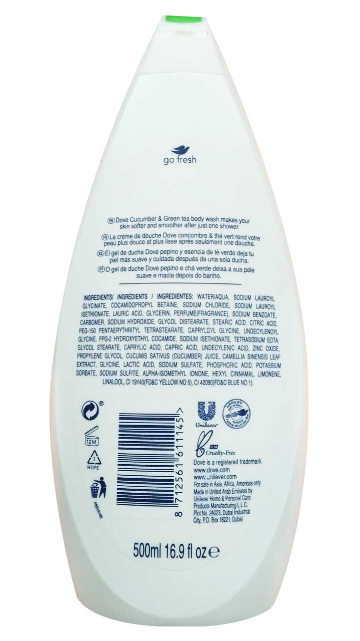 شامپو بدن شاداب کننده خیار و چای سبز داو Dove Cucumber Green Tea Arabia حجم 500 میلی لیتر