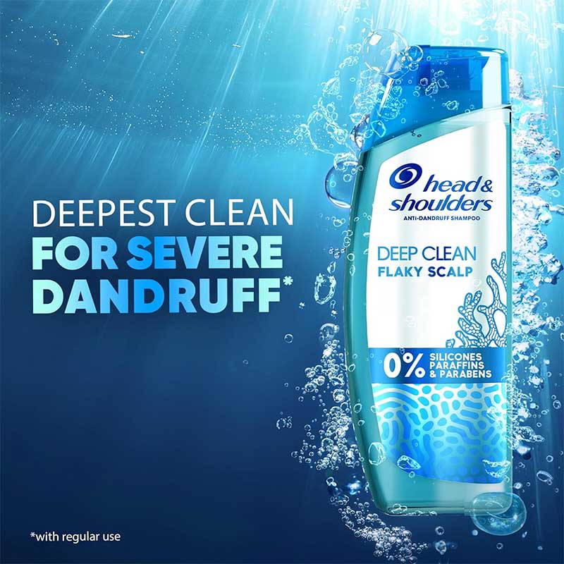 شامپو ضد شوره و سم زدای هد اند شولدرز Deep Clean Flaky Scalp دارای فرمول ویژه برای پاک کنندگی عمقی پوست سر همراه با سم زدایی منافذ، حذف پوسته های سر و احیای تمیزی پوست و موها می باشد. این شامپو حاوی مواد معدنی دریایی برای پاکسازی منافذ پوست سر و پیروکتون اولامین با عملکرد ضدشوره برای محافظت در برابر بازگشت شوره است. این فرمول همچنین حاوی عصاره گیاه ملیسا (بالم لیمو) برای تسکین و رفع التهاب و خارش است. شامپو ضدشوره دیپ کلین دارای بافت ژلی شفاف و فرمول با pH خنثی و غنی شده با آنتی اکسیدان است و محافظت کننده مو و پوست سر تمیز در طول روز می باشد.