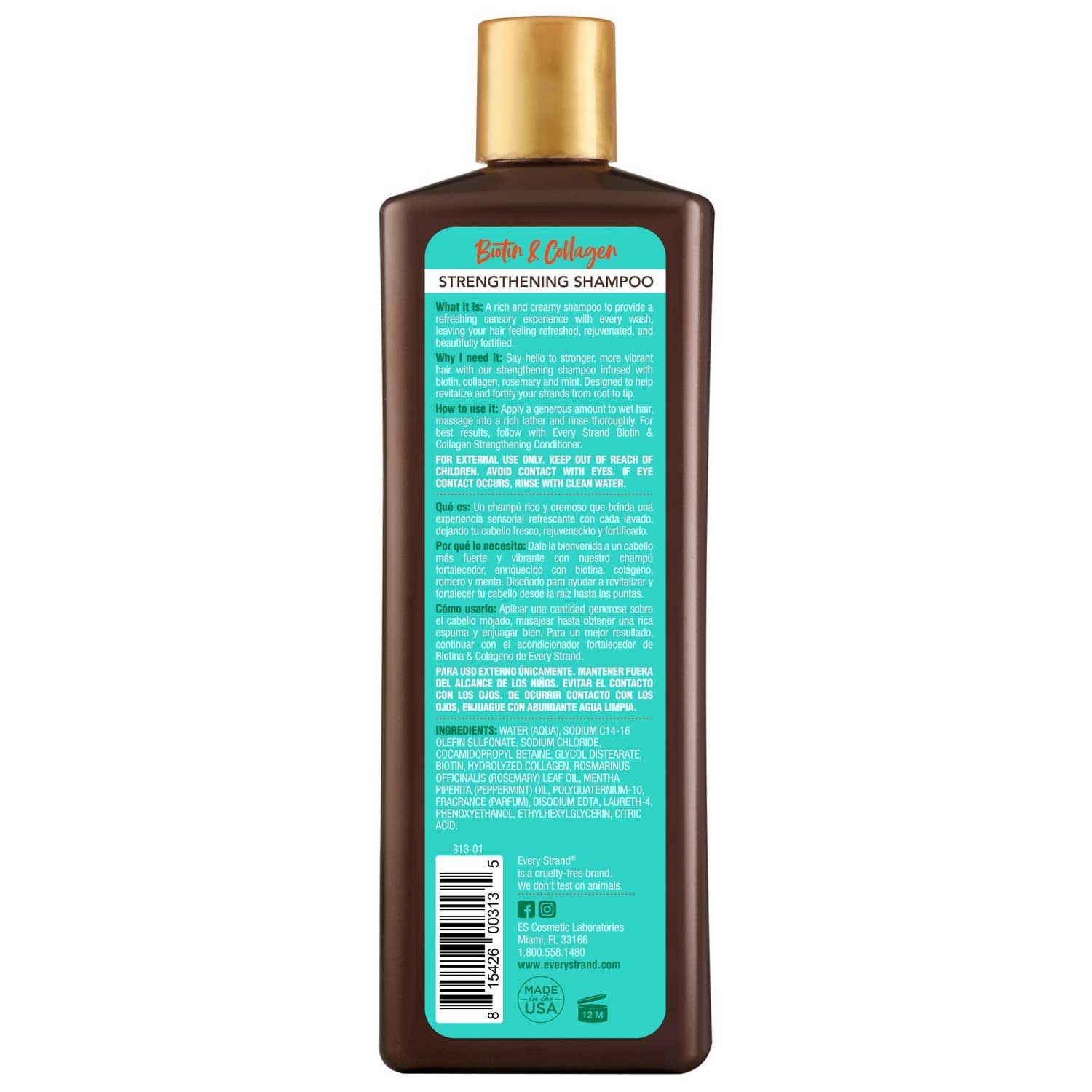 شامپو تقویت کننده موی بیوتین و کلاژن اوری استرند Biotin Collagen دارای بافت کرمی و مواد مغذی ضروری برای تغذیه ریشه مو، افزایش رشد موها و تقویت تارهای مو از ریشه تا انتها می باشد. این شامپو حاوی بیوتین برای استحکام بخشی ریشه مو و افزایش انعطاف پذیری ساقه مو است و با کلاژن برای کاهش شکنندگی موهای نازک و افزایش مقاومت تارهای مو همراه شده است. مواد موثر دیگر این فرمول شامل روغن رزماری برای شادابی و تنظیم تعادل پوست سر و روغن نعناع برای خنک کنندگی و افزایش گردش خون پوست سر می باشد.