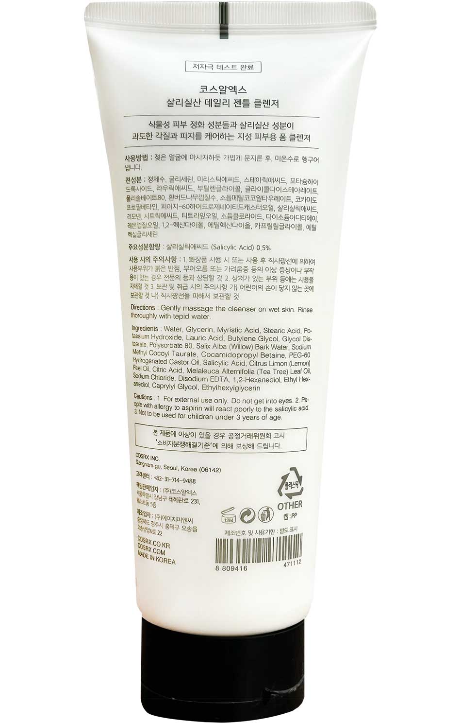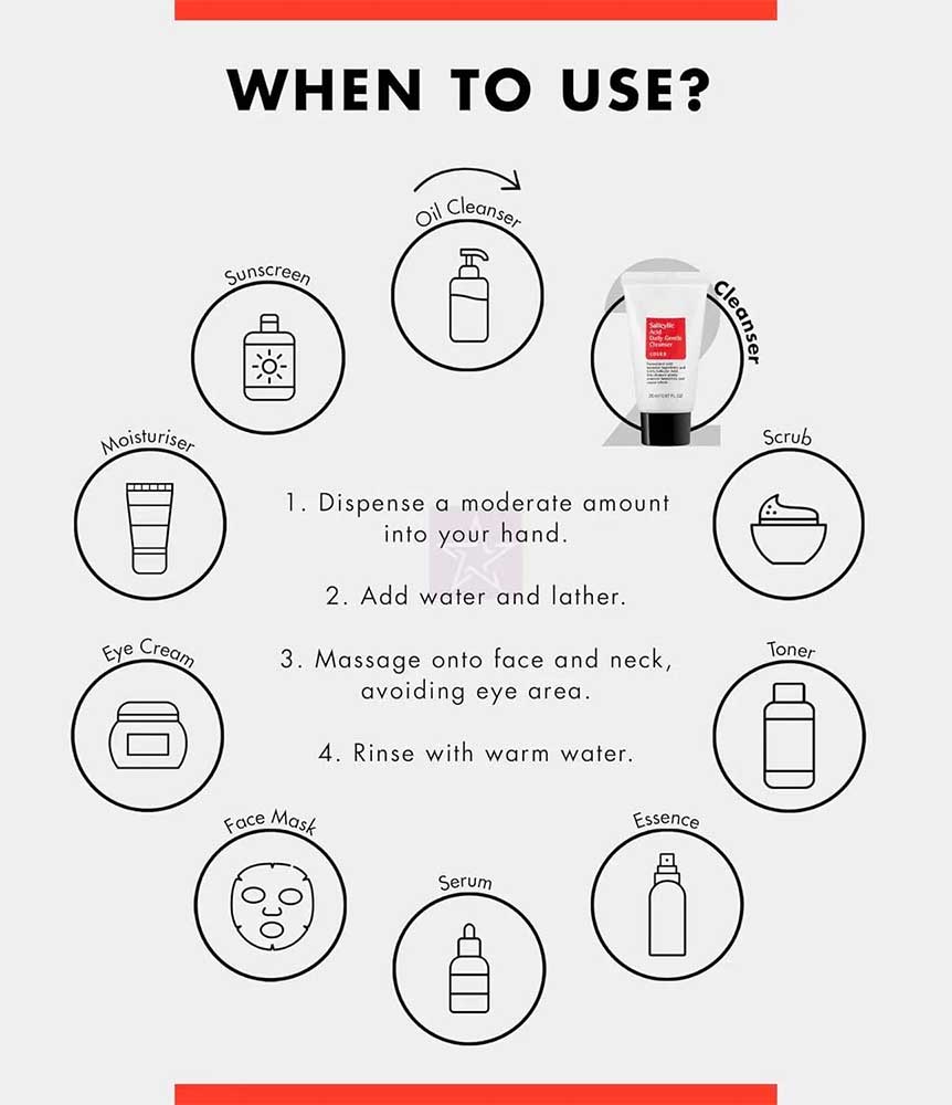 شوینده روزانه پوست چرب سالیسیلیک اسید کوزارکس Cosrx Salicylic Daily حاوی عصاره های گیاهی و 0.5 درصد سالیسیلیک اسید برای پاک کنندگی ملایم چربی اضافی سبوم، پاکسازی منافذ پوست و مقابله با ایجاد جوش می باشد. این فرمول همچنین حاوی روغن درخت چای با خواص آنتی باکتریال برای رفع جوش و متعادل سازی سطح چربی و رطوبت پوست و عصاره پوست درخت بید سفید برای تنظیم ترشح چربی سبوم است. علاوه بر این سیتریک اسید برای لایه برداری ملایم و پاکسازی سلول های مرده پوست به این ترکیب اضافه شده است.
