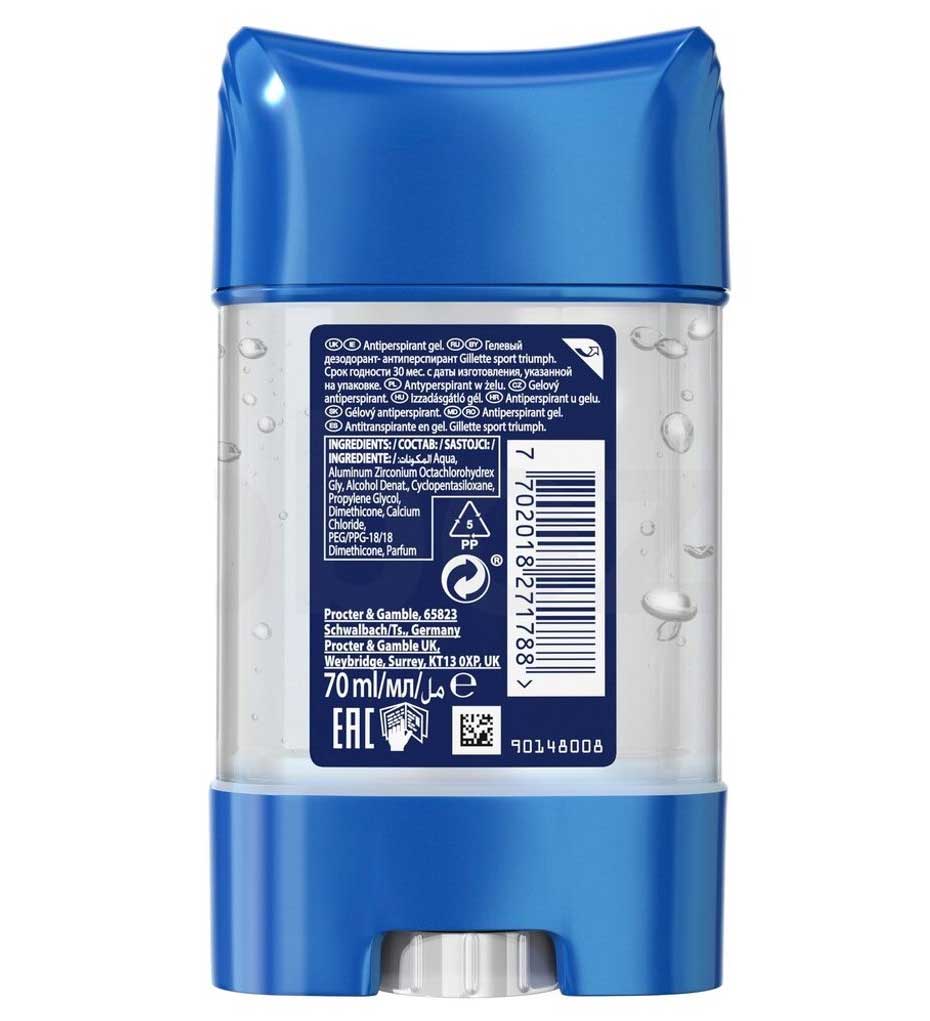 استیک ضدتعریق ژلی ژیلت اسپرت Gillette Sport Triumph دارای فرمول ویژه برای محافظت قابل اعتماد 48 ساعته تازگی و خشکی زیر بغل در حین فعالیت های پرتحرک ورزشی به همراه رایحه ماندگار می باشد. ژل ضدتعریق ژیلت دارای فناوری SCENT XTEND برای حفظ شدت رایحه به طور یکسان در تمام مدت استفاده است. این استیک با بافت ژلی محو شونده و بدون ایجاد لکه بر روی لباس، سپر محافظتی در برابر عرق و بوی عرق است و رایحه طولانی مدت دریایی، چوبی و لیمو را به همراه دارد.