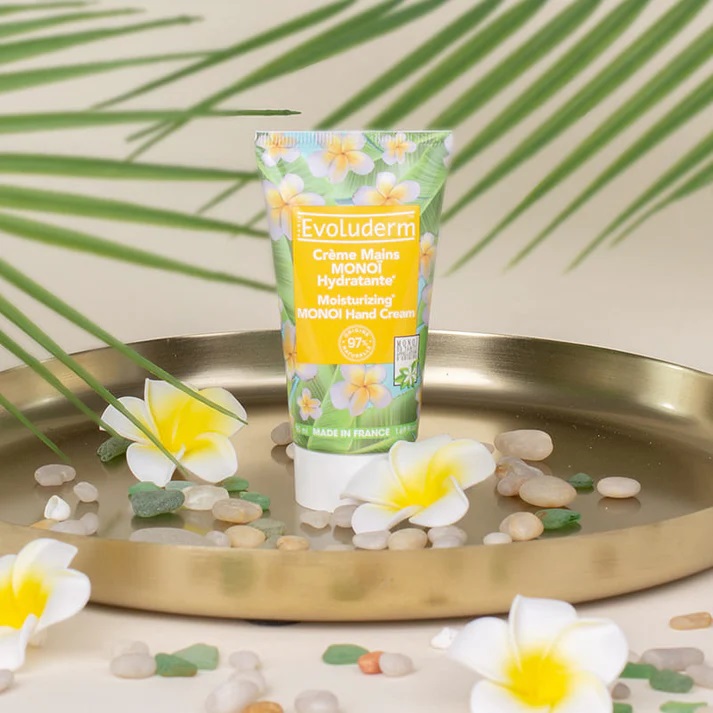 کرم آبرسان دست گل یاس و نارگیل مونوی اولودرم Evoluderm Monoi حاوی 97 درصد عصاره های طبیعی و فرمول ویژه برای مراقبت از پوست دست با عملکرد آنتی اکسیدانی می باشد. این کرم دست اولودرم حاوی روغن مونوی حاصل از خیساندن گلبرگ های گل یاس تاهیتی (پلومریا) در روغن نارگیل است و لطافت ابریشمی پوست را احیا می کند. این ترکیب همچنین حاوی شی باتر برای تغذیه کنندگی عمیق است و همراه با رایحه گل یاس و یلانگ یلانگ احساس پوستی لطیف و آرامش یافته را به ارمغان می آورد.