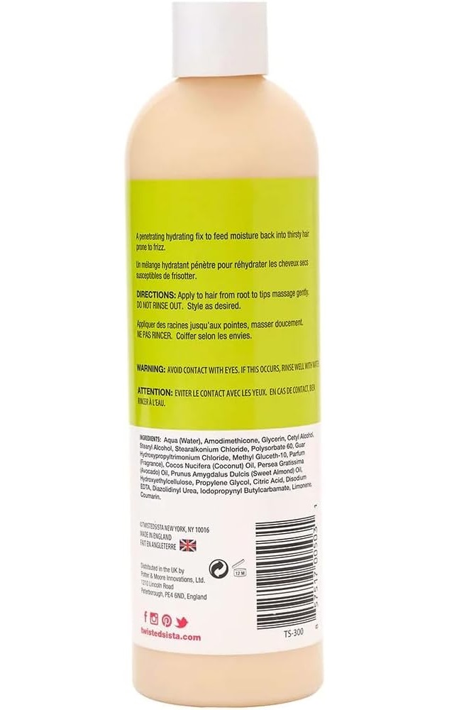 کرم مراقبت موهای فر آربن تراپی تویستد سیستا Twisted Sista Intensive محصول باکیفیت سالنی و حاوی عصاره های طبیعی جهت لطافت بخشی، آبرسانی قوی و تغذیه انواع موهای فر و ایجاد موهای زیبا، سبک و خوش حالت می باشد. کرم موهای فر تویستد سیستا حاوی روغن نارگیل و روغن آووکادو با خواص آبرسانی قوی، رفع وز مو و جلوگیری از خشکی و درهم گره خوردن موها می باشد. علاوه بر این روغن بادام جهت تقویت رشد و استحکام مو و جلوگیری از دوشاخه شدن و موخوره به این فرمول اضافه شده است. کرم موی تویستد سیستا رطوبت را در ساقه موهای تشنه و نیازمند تغذیه حفظ می کند و موهایی خوش حالت را به ارمغان می آورد.