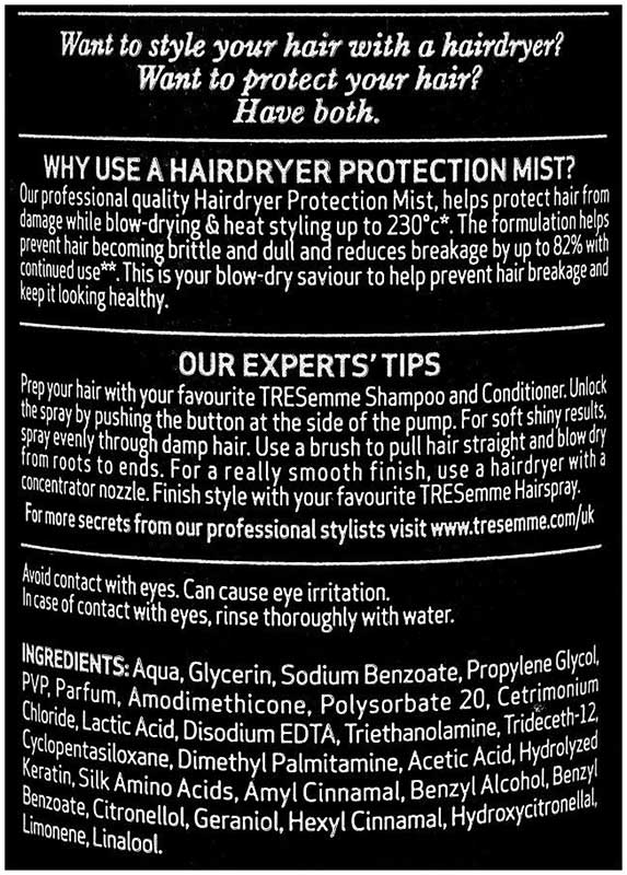 Aqua, Glycerin, Sodium Benzoate, Propylene Glycol, PVP, Parfum, Amodimethicone, Polysorbate 20, Cetrimonium Chloride, Lactic Acid, Disodium EDTA, Triethanolamine, Trideceth-12, Cyclopentasiloxane, Dimethyl Palmitamine, Acetic Acid, Hydrolyzed Keratin, Silk Amino Acids, Amyl Cinnamal, Benzyl Alcohol, Benzyl Benzoate, Citronellol, Geraniol, Hexyl Cinnamal, Hydroxycitronellal, Limonene, Linalool