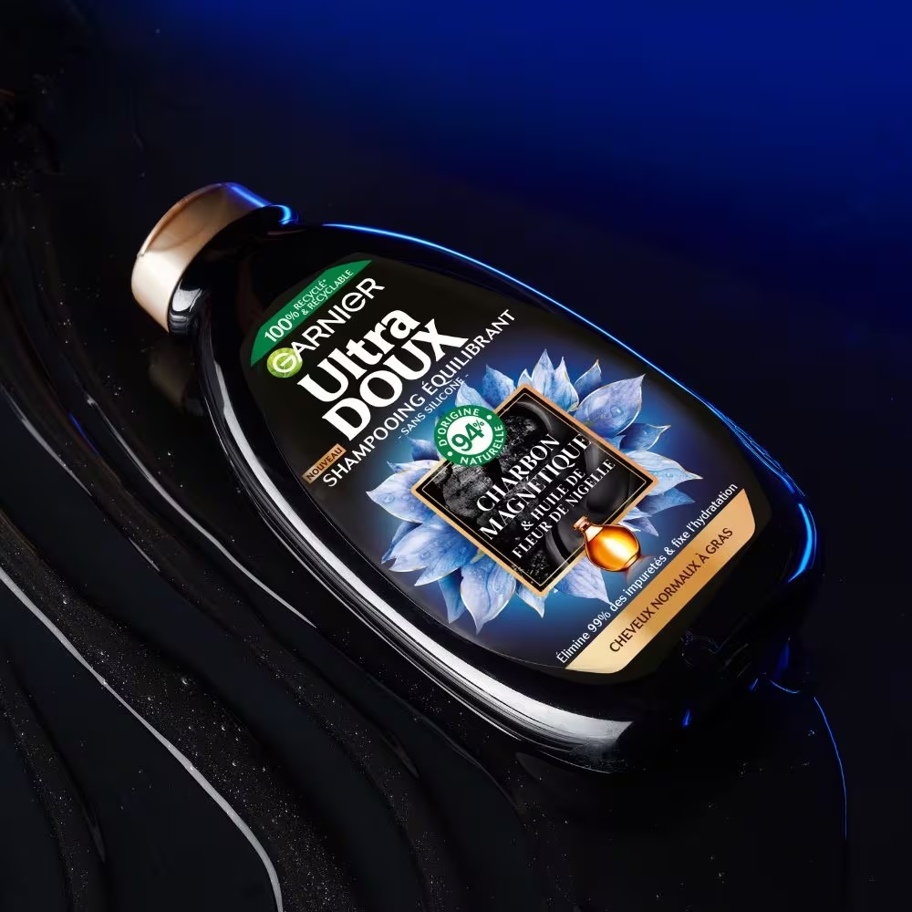 شامپو سم زدا و درخشان کننده زغال و روغن سیاه دانه گارنیه Ultra Doux Balancing دارای فرمول نوآورانه حاصل از ترکیب عصاره طبیعی ذغال سیاه با خواص پاک کنندگی، رفع چربی اضافی و تصفیه و خالص سازی پوست سر و موها می باشد که با روغن سیاه دانه جهت تسکین پوست سر حساس و تحریک شده و درخشان کنندگی موهای کدر همراه شده است. نتیجه احساس موهایی تازه، سالم و سبک با نمای درخشان و سه برابر تغذیه شده است که همراه با تسکین پوست سر حساس و رطوبت رسانی، تا 72 ساعت کنترل کننده صافی موها می باشد. شامپو ذغال و سیاه دانه گارنیه دارای رایحه دلپذیر ماندگار است و موها را کاملا خوشبو می کند.