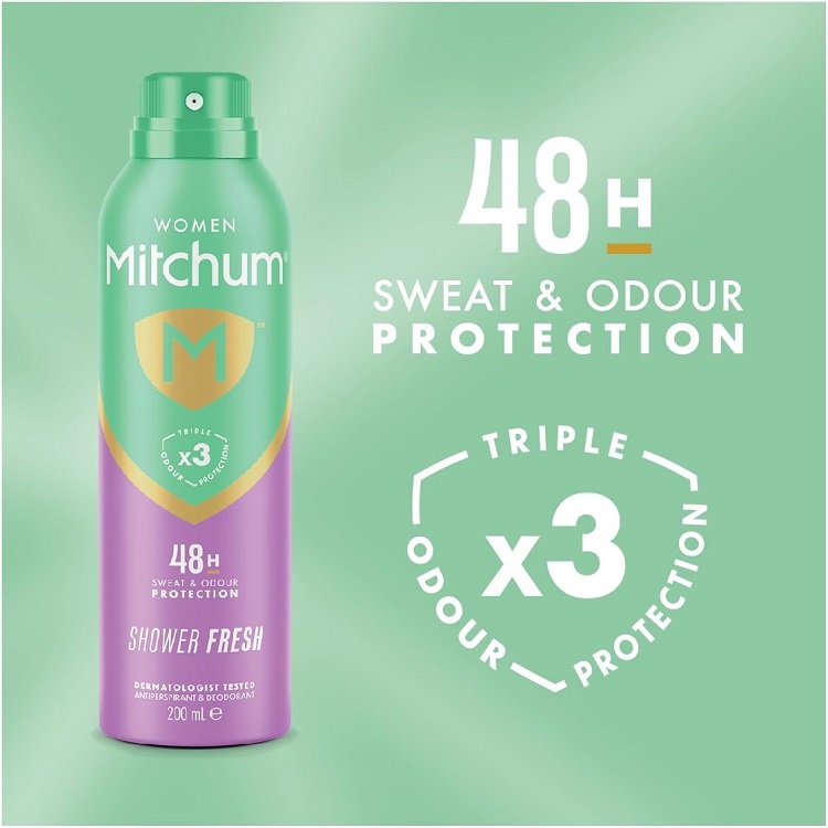 اسپری ضدتعریق میچام شاور فرش Mitchum Shower Fresh محافظت کننده قدرتمند 48 ساعته در برابر تعریق و بوی بد عرق به همراه احساس تمیزی و راحتی پس از دوش گرفتن می باشد. اسپری ضدتعریق میچام دارای تکنولوژی محافظت سه گانه در برابر بوی بد عرق ناشی از گرما، تحرک و استرس است و توسط رایحه تمیز و تازه و فرمول بدون الکل، احساس تمیزی و آسودگی کامل را فراهم می کند.