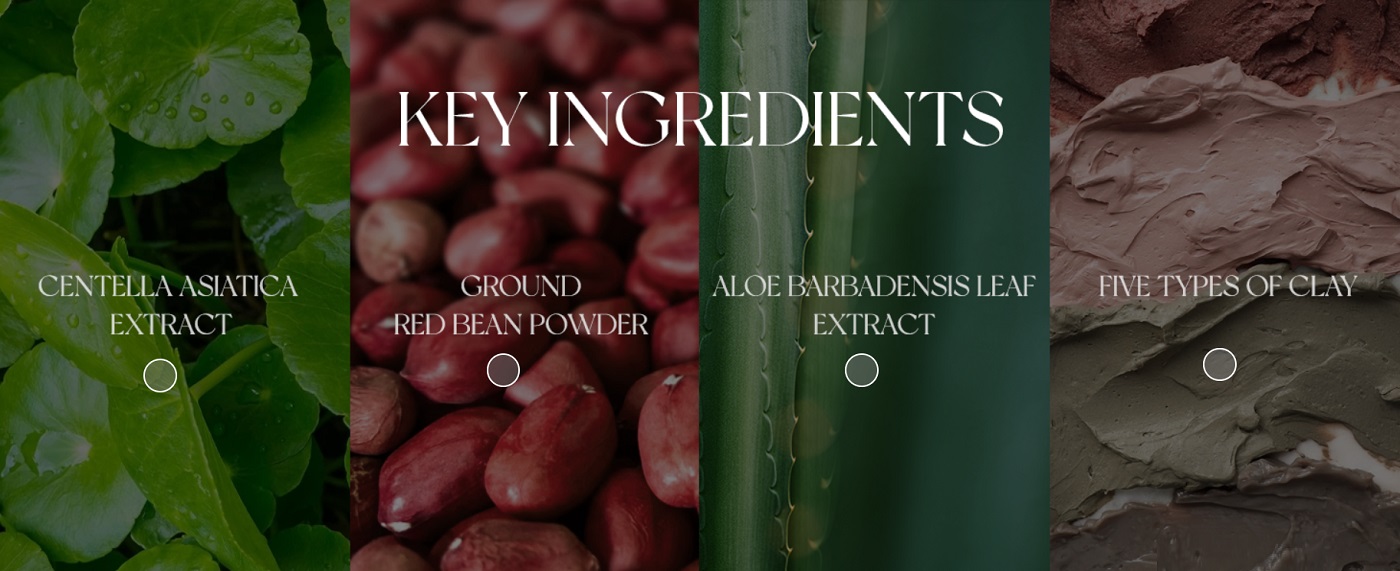Water, Kaolin (18%), Dipropylene Glyco, Glycerin, Titanium Dioxide (CI 77891), Butylene Glycol, Sodium Stearate, Centella Asiatica Extract, 1,2-Hexanediol, Phaseolus Angularis Seed Powder, Aloe Barbadensis Leaf Extract (1%), Cetearyl Olivate, Propanediol, Sorbitan Olivate, Dimethicone, Iron Oxides (CI 77491), Ethylhexylglycerin, Sodium Phytate, Bentonite, Lllite, Mineral Salts, Montmorillonite, Calamine