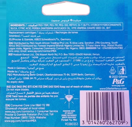 تیغ اصلاح یدک ژیلت ونوس Gillette Venus Smooth دارای تکنولوژی اصلاح سه تیغه دقیق و نوار ژل مرطوب کننده با عصاره آووکادو و گل فریزیا می باشد. تیغ یدک ژیلت ونوس همچنین دارای طراحی ارگونومیک برای هماهنگی کامل تیغ با انحنای بدن و شیو کامل و بی نقص است.