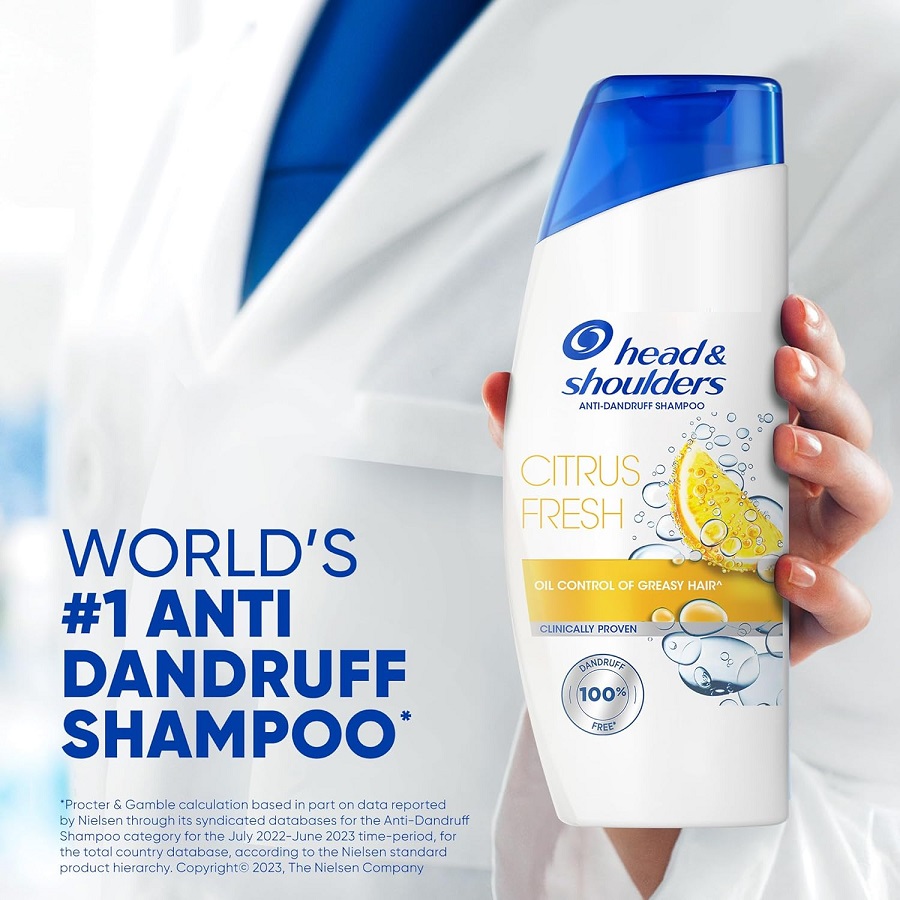شامپو ضد شوره موهای چرب هد اند شولدرز Head and Shoulders Citrus Fresh حاوی عصاره مرکبات بوده و علاوه پر پاک کنندگی کامل پوست سر چربی پوست را تنظیم می کند و حاوی آنتی اکسیدان و pH متناسب با پوست می باشد. فرمول متعادل کننده میکروبیوم پوست، منشاء ایجاد شوره را مورد هدف قرار می دهد و با محافظت کامل از بازگشت شوره جلوگیری می کند.