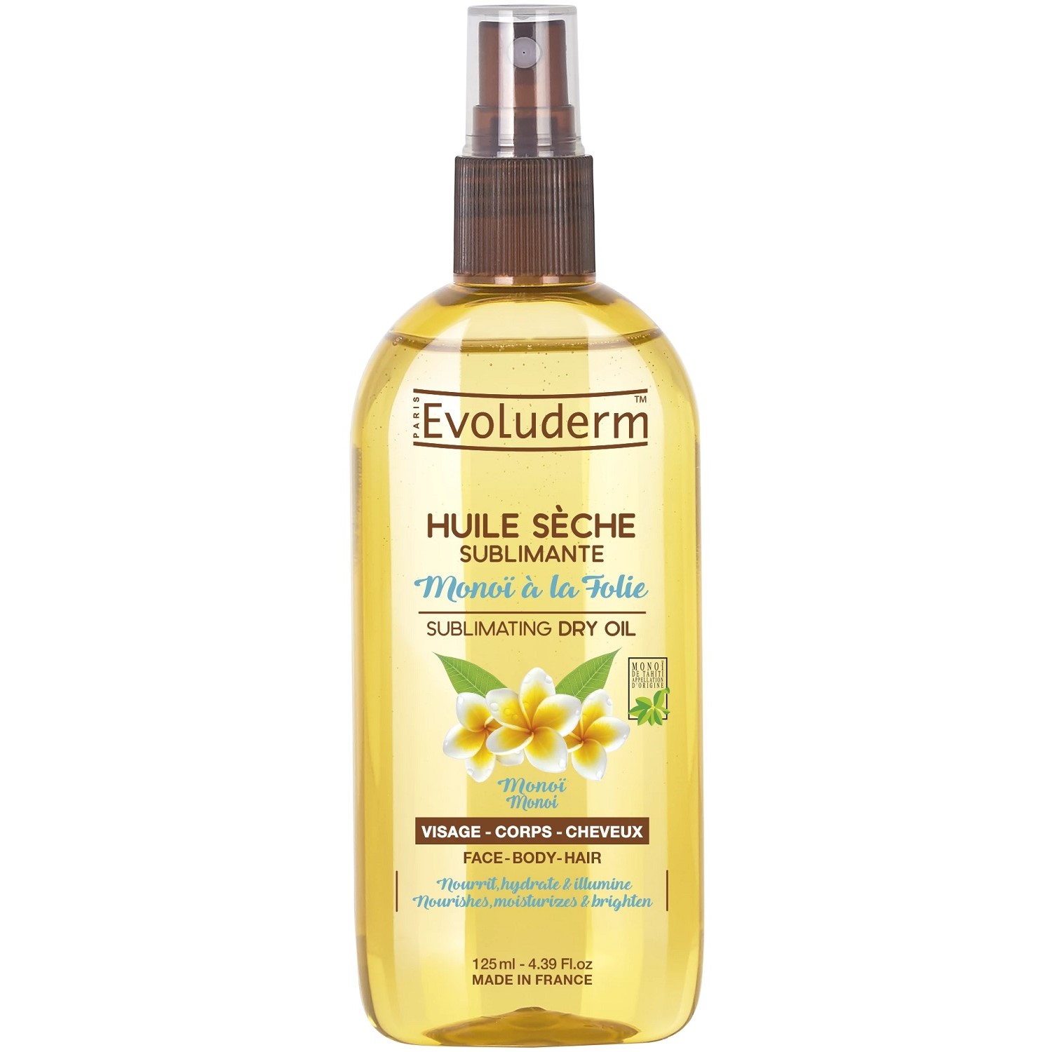 اسپری مغذی پوست و موی اولودرم Evoluderm Monoi حاوی 1 درصد روغن مونوی به عنوان درمان سنتی زیبایی در جزیره پلی نزیا و تاهیتی است که بدست آمده از خیساندن گل یاس تاهیتی در روغن نارگیل می باشد. این روغن با رایحه دلپذیر تغذیه کننده و لطافت بخش پوست صورت، بدن و موها است و ضمن برطرف کردن علائم خشکی پوست و مو، به طور کامل جذب می شود و آثار چرب کنندگی بر جای نمی گذارد.
