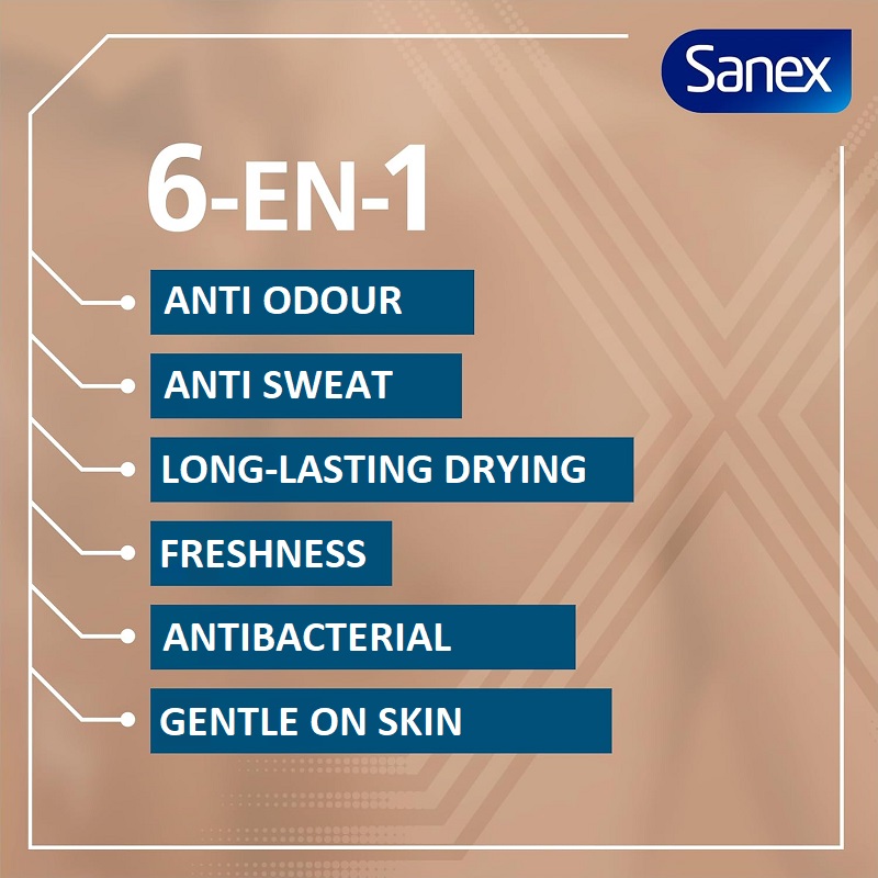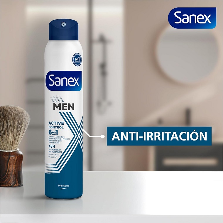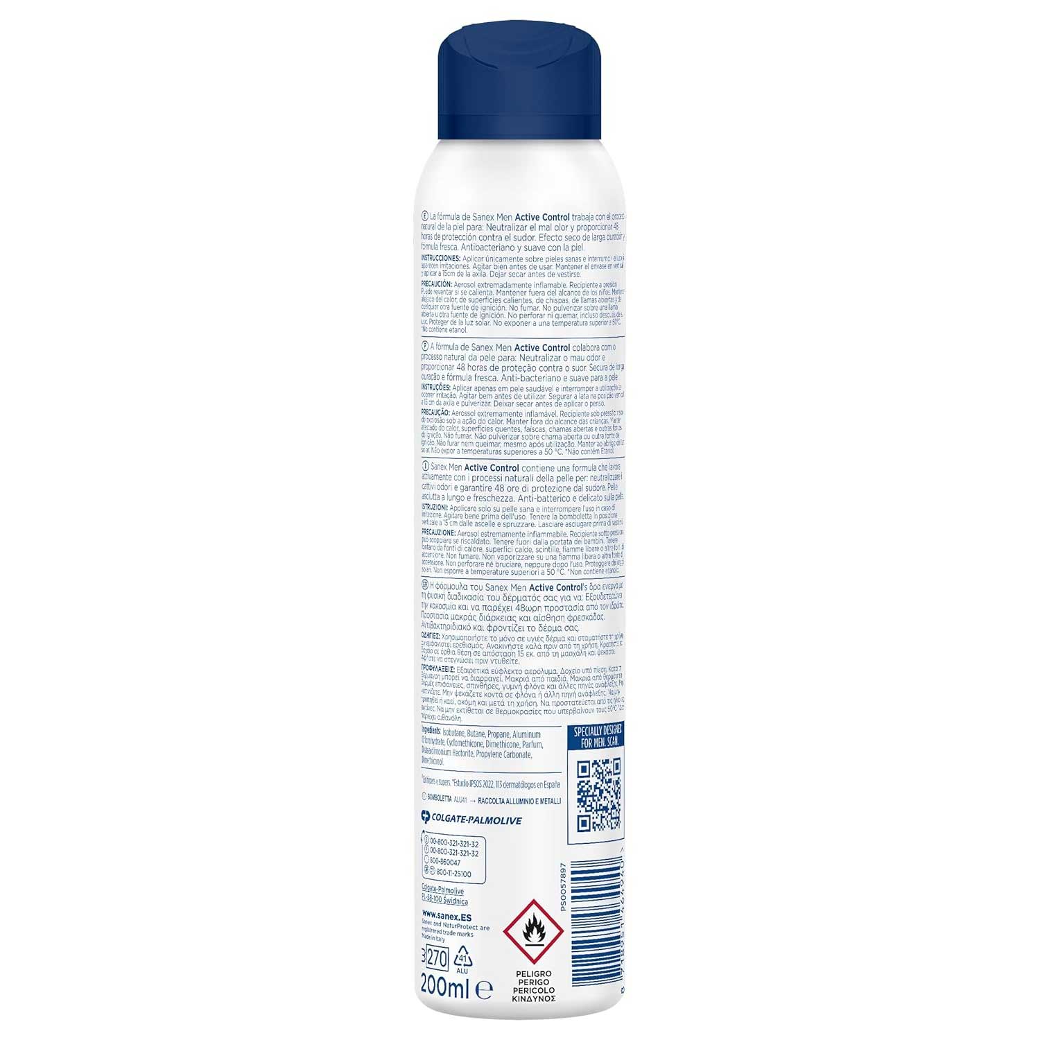 اسپری ضدتعریق آقایان سانکس اکتیو کنترل Sanex Men Active Control محافظت کننده 48 ساعته فعال در برابر عرق و حفظ کننده خشکی و تازگی زیر بغل آقایان می باشد. اسپری اکتیو کنترل دارای 6 عملکرد ضد تعریق، ضد بوی عرق، حفظ کننده خشکی طولانی مدت، تازگی بخش، آنتی باکتریال و ملایم بر روی پوست است.