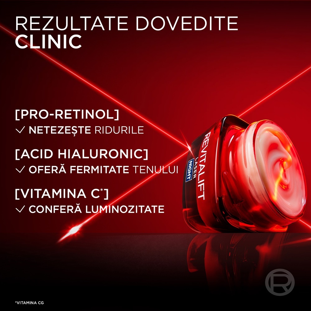 کرم ضدچروک شب لورال رویتالیفت لیزر LOreal Laser Triple Action دارای فرمول جدید و قدرتمند با سه عملکرد صاف کننده چروک ها، تصحیح کننده بافت پوست و بازسازی کننده نمای جوان صورت می باشد. کرم لیزر شب لورال حاوی هیالورونیک اسید جهت آبرسانی قوی پوست در زمان استراحت در شب و پرو رتینول پیشرفته به عنوان ضد چروک قوی با قابلیت آزادسازی آهسته و تدریجی است که به صاف و هموار شدن سطح پوست کمک می کند. فرمول این کرم همچنین حاوی ویتامین سی با فرم CG برای اثرگذاری قوی تر و حفظ پایداری آن است که به روشن شدن پوست و کاهش لک و تیرگی کمک می کند. عصاره گیاه سنتلا آسیاتیکا نیز با خواص ترمیم کنندگی و بازسازی قوی به آن اضافه شده است و مواد مورد نیاز را در لایه های عمقی اپیدرم در طول شب جذب پوست می کند و همانند یک جلسه لیزر درمانی پوستی صاف و جوانتر خواهیم داشت.