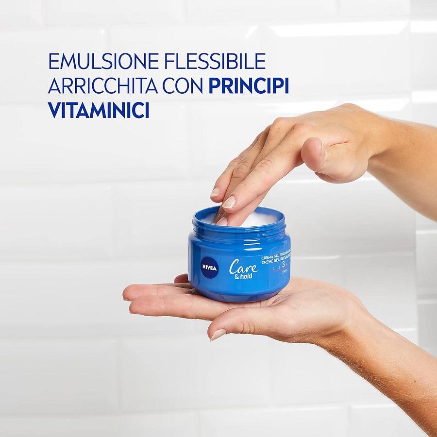 ژل کرم حالت دهنده موی نیوا Nivea Care Hold دارای فرمول ویژه برای حفظ حالت انعطاف پذیر مو و بدون احساس چسبندگی می باشد. این ژل کرم حاوی ویتامین B3 و ویتامین B5 برای تغذیه، استحکام بخشی و بازسازی موها است و بدون ایجاد باقیمانده و بدون خشک کردن موها، استایلی با حالت طبیعی و زیبا را به ارمغان می آورد.