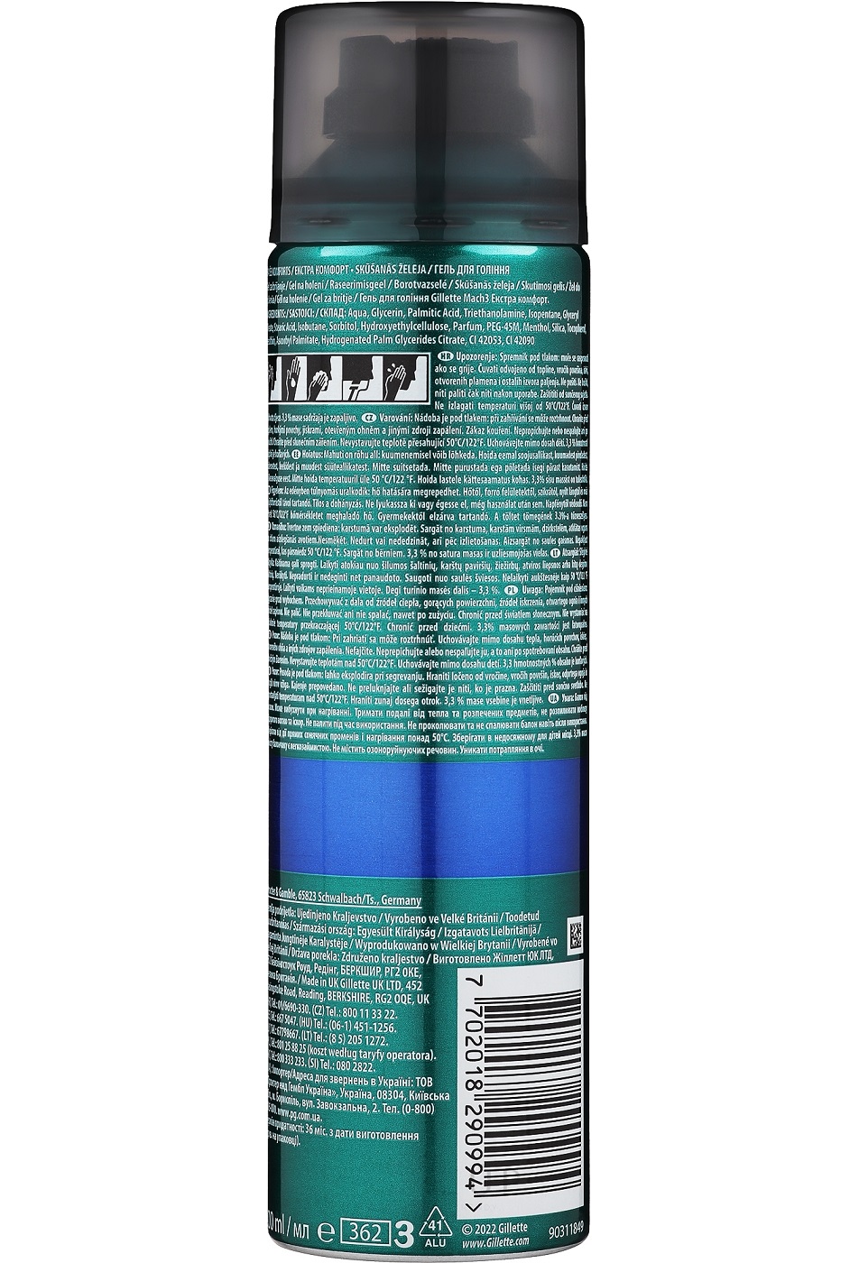 ژل اصلاح ژیلت مک تری Gillette Mach3 Extra Comfort دارای بافت ژل تبدیل شونده به فوم و فرمول روان کننده اصلاح و محافظت کننده پوست می باشد. این ژل اصلاح ژیلت حاوی عصاره نعناع برای شادابی و طراوت پوست، ویتامین ای برای محافظت پوست و گلیسیرین برای حفظ رطوبت پوست پس از اصلاح است و احساس آسودگی پس از شیو کردن را به ارمغان می آورد.