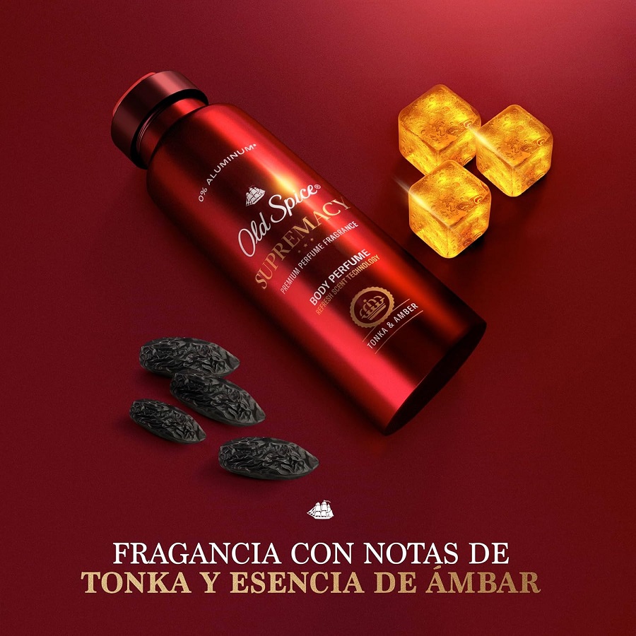 اسپری خوشبوکننده بدن اولد اسپایس سوپریمسی Old Spice Supremacy محافظت کننده پیوسته ساعته تازگی بدن با رایحه پرمیوم به همراه فناوری مقاومت در برابر محو شدن رایحه برای حس شادابی طولانی مدت می باشد. اسپری سوپریمسی دارای فرمول با مقدار عطر بیشتر نسبت به بقیه اسپری های دئودورانت اولد اسپایس برای ماندگاری در طول روز است و حاوی رایحه دانه تونکا و کهربا بوده و به همراه ماده موثر پیروکتون اولامین به عنوان آنتی باکتریال، محافظت کننده سلامتی بدن و احساس تازگی در طول روز است.