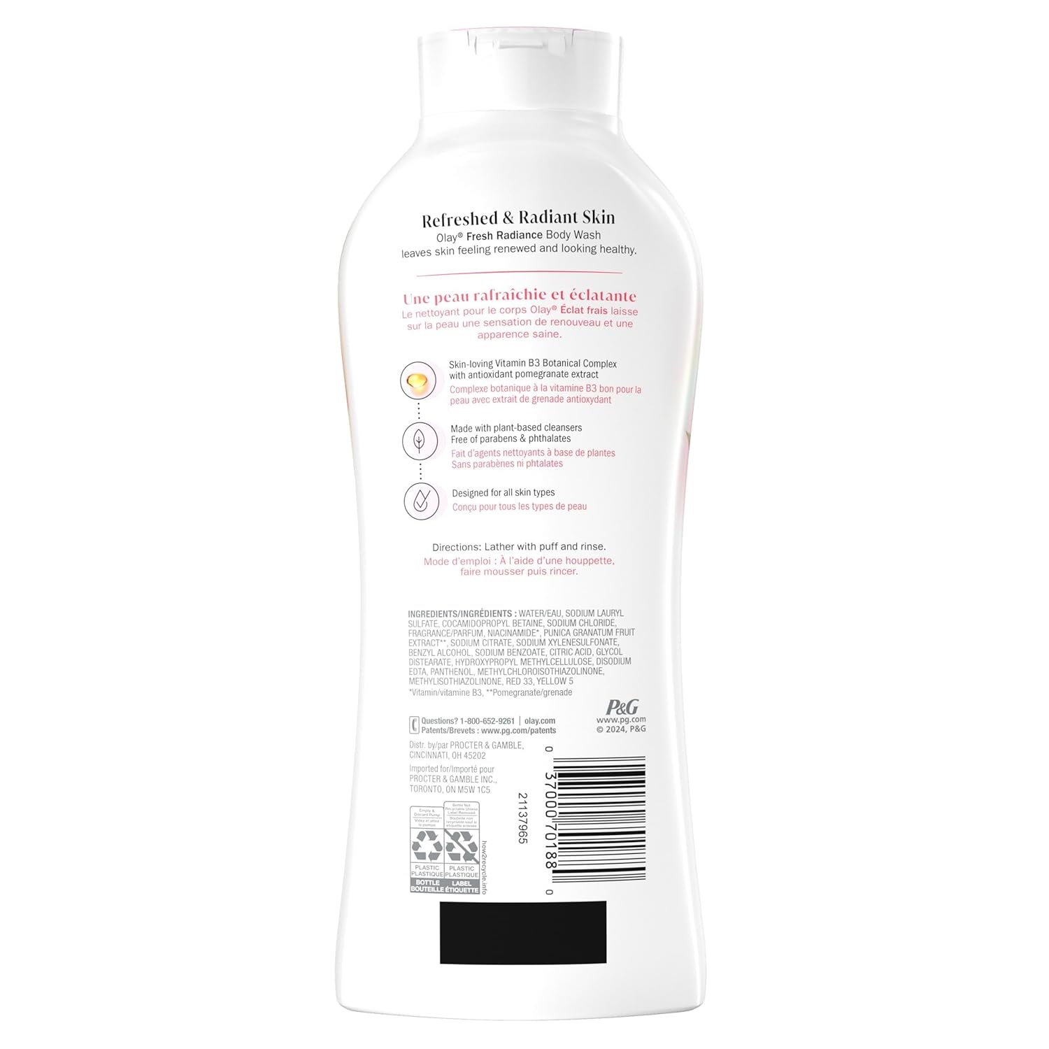 Water, Sodium Lauryl Sulfate, Cocamidopropyl Beraine, Fragrance, Sodium Chloride, Niacinamide, Punica Granatum Fruit Extract, Sodium Citrate, Sodium Xylenesulfonate, Benzyl Alcohol, Sodium Benzoate, Citric Acid, Glycol Distearate, Hydroxypropyl Methylcellulose, Disodium EDTA, Panthenol, Methylchloroisothiazolinone, Methylisothiazolinone, Red 33, Yellow 5