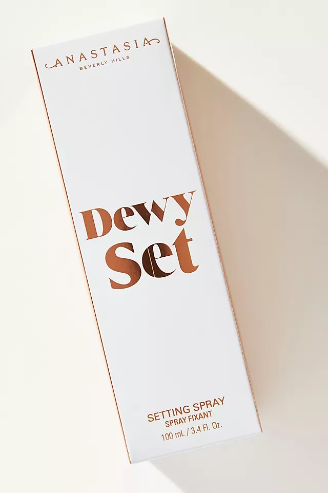 اسپری تثبیت کننده آرایش آناستازیا Anastasia Dewy Set دارای فرمول حرفه ای و باکیفیت برای ایجاد آرایش ماندگار و ظاهر درخشان بدون چربی و شبنمدار چهره می باشد. این اسپری می تواند به تنهایی بر روی پوست تمیز صورت برای ایجاد نمای شاداب و باطراوت صورت و آماده سازی برای آرایش مورد استفاده قرار گیرد و یا پس از آرایش، برای ایجاد نمای شاداب و شبنم دار استفاده شود. اسپری ست آناستازیا حاوی رایحه آرامش بخش نارگیل و وانیل است و بافت مایع آن شفاف و بدون اکلیل می باشد و فقط ظاهر بطری اسپری به شکل اکلیلی طراحی شده است.