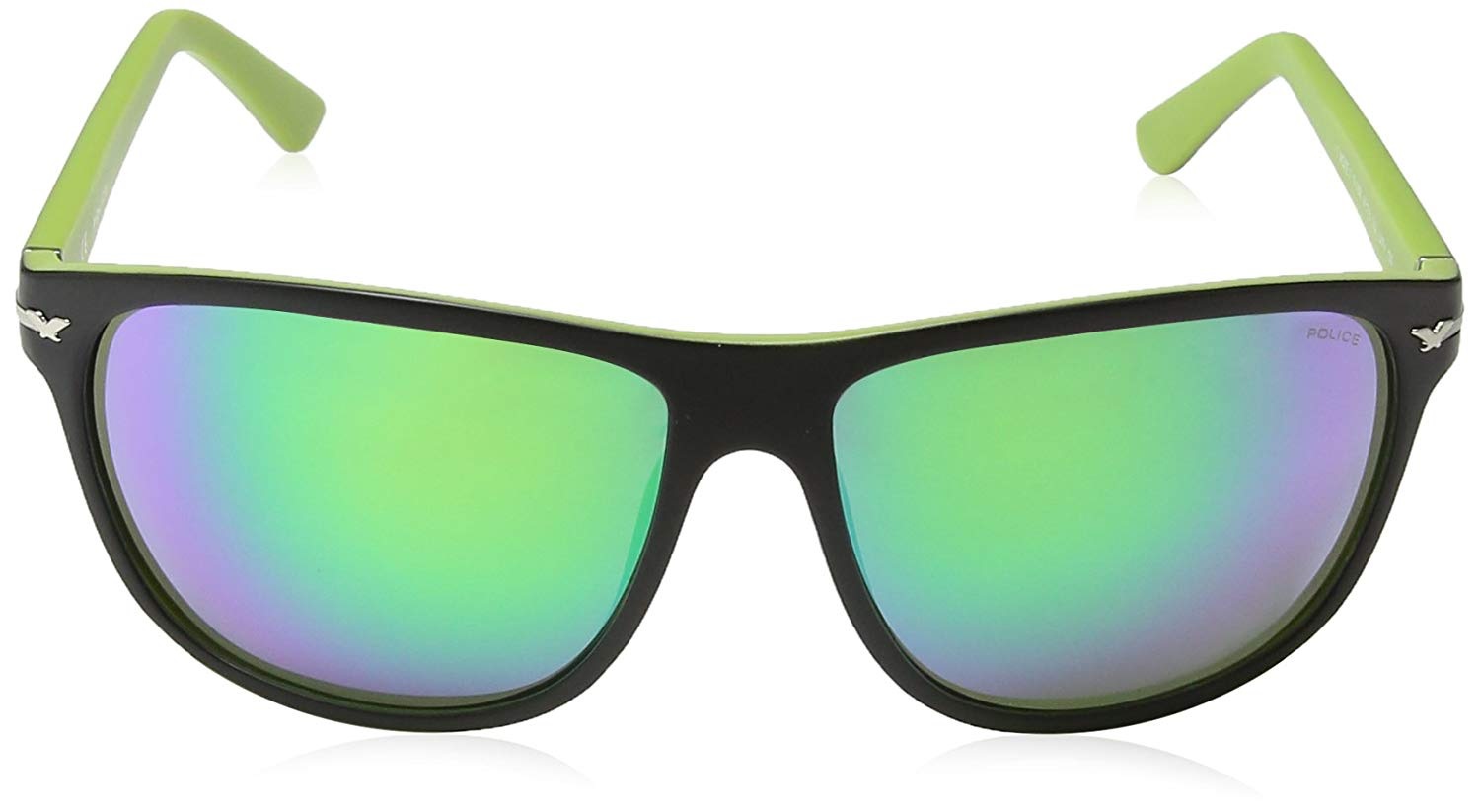 عینک آفتابی مردانه پلیس مدل S1958-U47V-64 از سری Police Wayfarer می باشد و رنگ لنز آن سبز است.