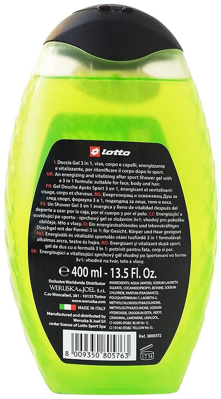 ژل دوش لوتو مدل Lotto Power شامپویی سه کاره مناسب برای شستشوی بدن، صورت و مو می باشد. ژل دوش لوتو انرژی بخش و شاداب کننده بوده و ایده آل برای یک حمام نشاط آور بعد از ورزش می باشد. لوتو اسپورت ایتالیا (به انگلیسی: Lotto Sport Italia) کارخانهٔ تولید البسه، کفش و تجهیزات ورزشی است. مقر آن شهر ترویزو در کشور ایتالیا است و در سال ۱۹۷۳ تأسیس شده است.