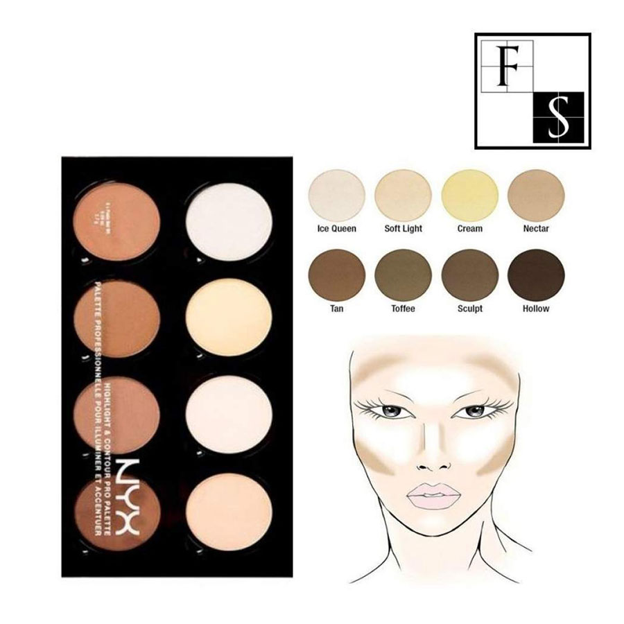 پالت هایلایت و کانتور نیکس مدل NYX Highlight and Contour Pro Palette دارای 8 رنگ از تناژ روشن تا تیره بوده و با بافتی نرم و پودری ویژگی های زیبای صورت شما را برجسته می کند.