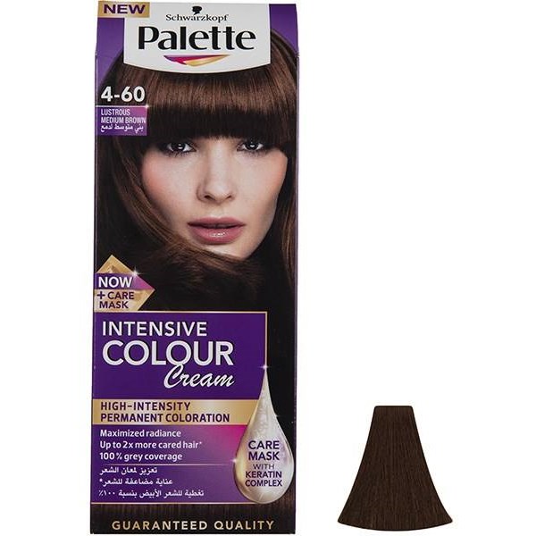 کیت رنگ مو پلت سری اینتنسیو شماره 4.60 قهوه ای متوسط درخشان محصولی با کیفیت از برند آلمانی شوارتسکف می باشد. رنگ موی پلت حاوی ویتامین پنتنول و رایحهی عسل برای حفظ رطوبت و محافظت از لایهی سطحی مو است. این رنگ مو پوشش دهند 100 درصد موهای سفید بوده و دارای بیشترین میزان ماندگاری (درجه 3) با تست کیفیت کامل در لابراتوارهای آلمان می باشد.
