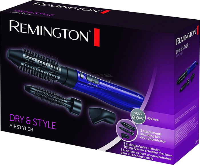 سشوار ثابت رمینگتون Remington AS800 دارای موتور DC با قدرت 800 وات می باشد. این سشوار دارای سه سری مختلف است که شامل برس 38 میلی متری که موجب حجم دهی و پرپشت کردن موها میشود، برس 21 میلی متری برای ایجاد فرهای زیبا بر روی موها به همراه سری متمرکز کننده به منظور خشک کردن سریع مو.