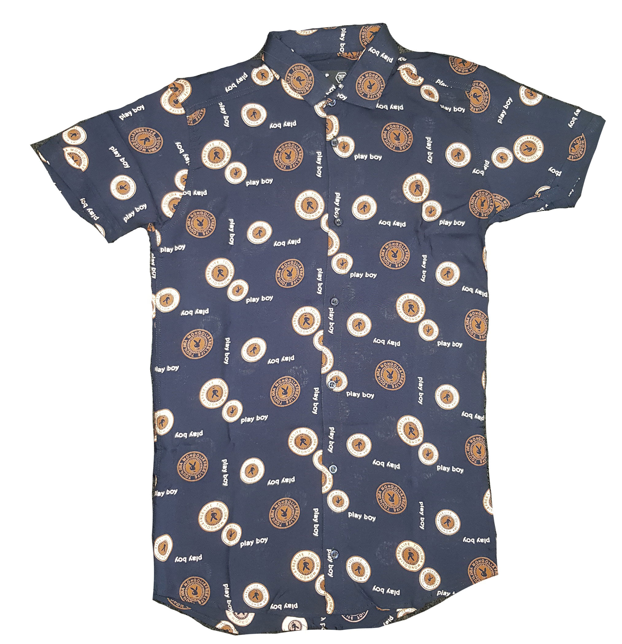 پیراهن آستین کوتاه مردانه سورمه ای طرح دار کد 342423