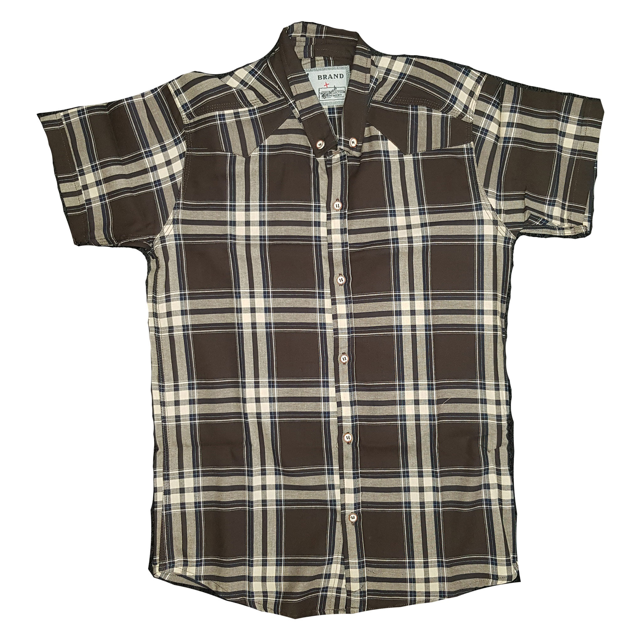 پیراهن آستین کوتاه چهارخانه مردانه مدل MJS Brand