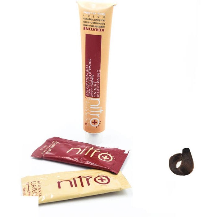 رنگ موی نیترو (نیترو پلاس) سری کراتین حاوی روغن زیتون و ویتامین C بوده و دارای خاصیت درخشان کنندگی مو می باشد. رنگ موی نیترو از مواد اولیه با کیفیت لابراتورهای خارجی تولید می شود و دارای دو ساشه جهت آماده سازی مو قبل از فرایند رنگ و ماسک مو برای تثبیت و نرم کنندگی بعد از رنگ کردن است.