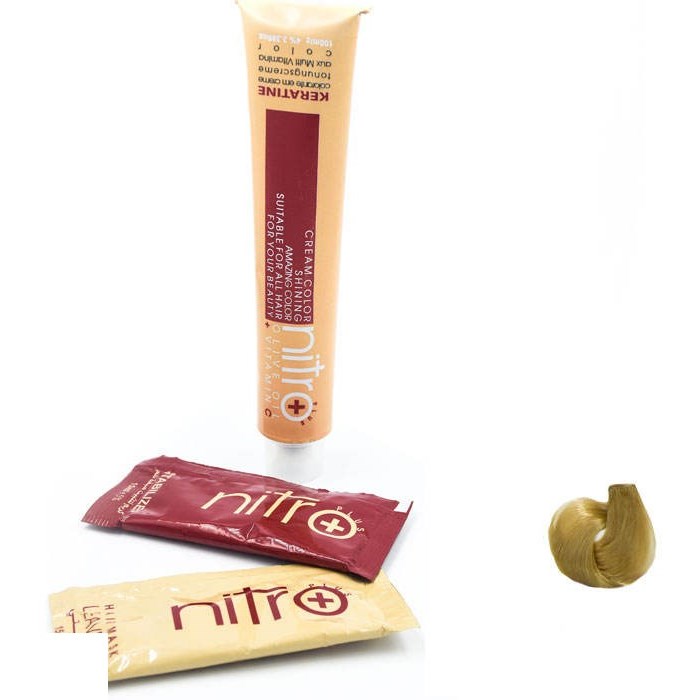 رنگ موی نیترو (نیترو پلاس) سری کراتین حاوی روغن زیتون و ویتامین C بوده و دارای خاصیت درخشان کنندگی مو می باشد. رنگ موی نیترو از مواد اولیه با کیفیت لابراتورهای خارجی تولید می شود و دارای دو ساشه جهت آماده سازی مو قبل از فرایند رنگ و ماسک مو برای تثبیت و نرم کنندگی بعد از رنگ کردن است.