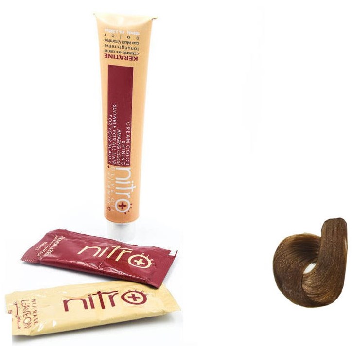 رنگ موی نیترو (نیترو پلاس) سری کراتین حاوی روغن زیتون و ویتامین C بوده و دارای خاصیت درخشان کنندگی مو می باشد. رنگ موی نیترو از مواد اولیه با کیفیت لابراتورهای خارجی تولید می شود و دارای دو ساشه جهت آماده سازی مو قبل از فرایند رنگ و ماسک مو برای تثبیت و نرم کنندگی بعد از رنگ کردن است.