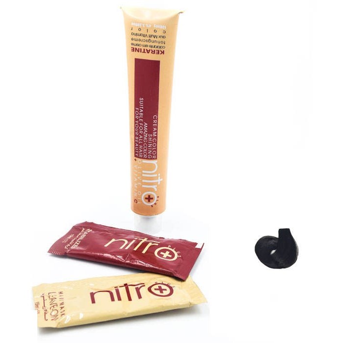 رنگ موی نیترو (نیترو پلاس) سری کراتین حاوی روغن زیتون و ویتامین C بوده و دارای خاصیت درخشان کنندگی مو می باشد. رنگ موی نیترو از مواد اولیه با کیفیت لابراتورهای خارجی تولید می شود و دارای دو ساشه جهت آماده سازی مو قبل از فرایند رنگ و ماسک مو برای تثبیت و نرم کنندگی بعد از رنگ کردن است.