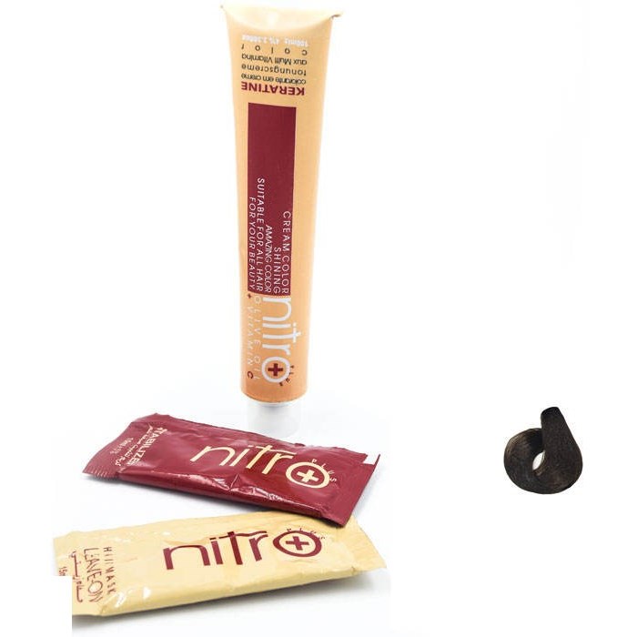 رنگ موی نیترو (نیترو پلاس) سری کراتین حاوی روغن زیتون و ویتامین C بوده و دارای خاصیت درخشان کنندگی مو می باشد. رنگ موی نیترو از مواد اولیه با کیفیت لابراتورهای خارجی تولید می شود و دارای دو ساشه جهت آماده سازی مو قبل از فرایند رنگ و ماسک مو برای تثبیت و نرم کنندگی بعد از رنگ کردن است.