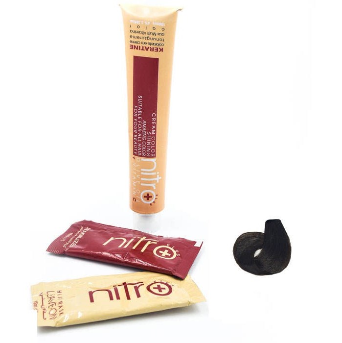 رنگ موی نیترو (نیترو پلاس) سری کراتین حاوی روغن زیتون و ویتامین C بوده و دارای خاصیت درخشان کنندگی مو می باشد. رنگ موی نیترو از مواد اولیه با کیفیت لابراتورهای خارجی تولید می شود و دارای دو ساشه جهت آماده سازی مو قبل از فرایند رنگ و ماسک مو برای تثبیت و نرم کنندگی بعد از رنگ کردن است.
