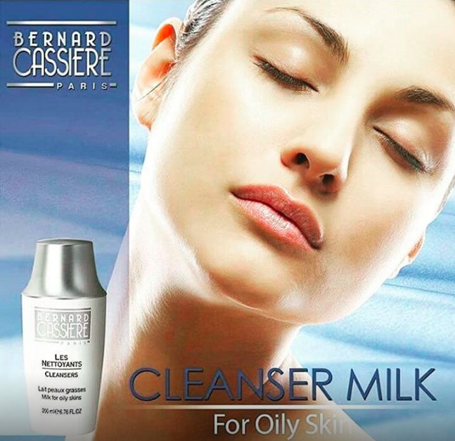 با سر انگشتان شیر پاک کن را بر روی صورت و گردن زده و با حرکت دورانی ماساژ دهید و سپس از لوسیون پوست چرب برنارد کسیر استفاده نمایید.