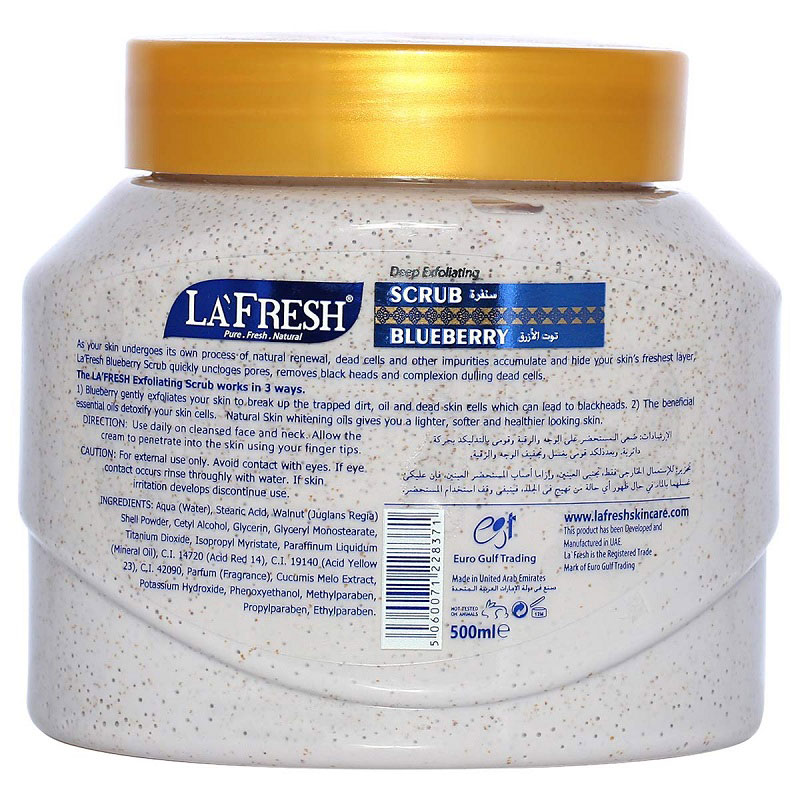 اسکراب صورت و بدن لافرش حاوی عصاره بلوبری پاک کننده کامل پوست می باشد و پوست را نرم و روشن تر می کند.
