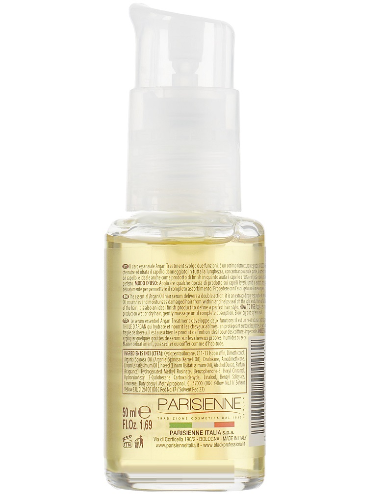 سرم مغذی مو بلک پروفشنال لاین حاوی روغن آرگان دارای دو قابلیت می باشد. این سرم موهای آسیب دیده را رطوبت رسانی و تغذیه می کند و از دوشاخه شدن و موخوره جلوگیری می کند. علاوه بر این برای حالت دهی موها نیز بسیار مناسب است. سرم موی بلک پروفشنال حاوی روغن آرگان و روغن دانه کتان بوده و تغذیه کننده عالی مو است.