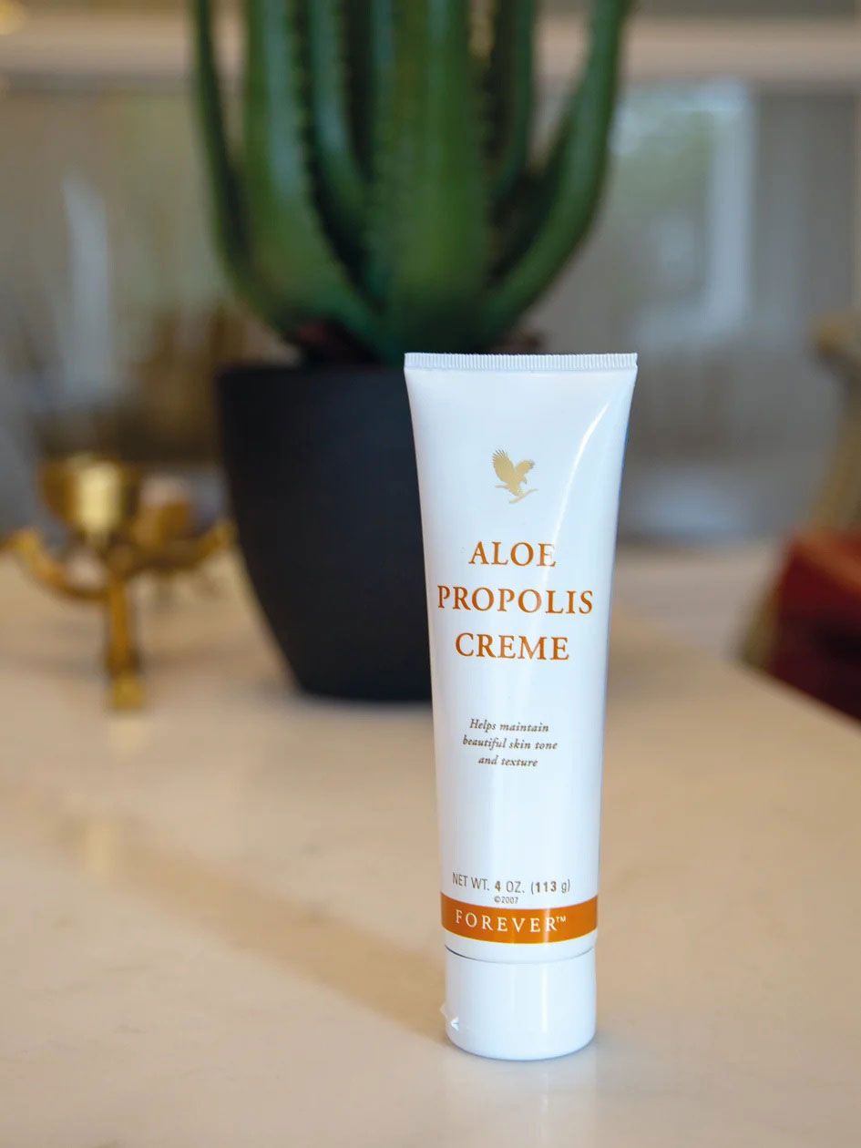 کرم آلوئه پروپولیس فوراور لیوینگ غنی شده با پروپولیس زنبور عسل، بابونه و ژل آلوئه ورا بوده و محافظت کننده زیبایی و بافت پوست می باشد. کرم آلوئه پروپولیس به عنوان یک کرم نرم کننده و مرطوب کننده، ترکیبی عالی از ژل غنی شده آلوئه ورا با پروپولیس زنبور عسل است که با عناصر دیگری که همگی برای سلامت و بهداشت پوست بسیار مفید هستند در هم آمیخته شده اند. بابونه که یکی از معروف ترین گیاهان برای سلامت پوست است نیز به این ترکیب اضافه شده است. چیزی که این فرمول را تکمیل می کند ویتامین های A و E است که هر دو داری خواص طبیعی نرم کنندگی برای پوست هستند.