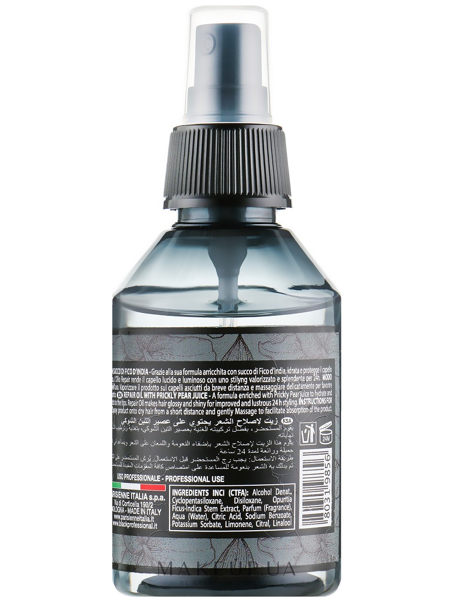 روغن ترمیم کننده مو بلک پروفشنال لاین تغذیه کننده قوی مو بوده و سرزندگی و درخشندگی موها را باز می گرداند. روغن موی بلک نویر حاوی عصاره گلابی خاردار بوده و با خشکی و شکنندگی موها مبارزه می کند. این روغن ساختار مو را بازسازی کرده و موها را نرم و آبرسانی می کند. روغن ترمیم کننده بلک همچنین حاوی عصاره کاکتوس سیسیلی بوده و باعث می شود رطوبت به خوبی در فیبر مو نفوذ کند و از مو در مقابل عوامل محیطی محافظت کند.